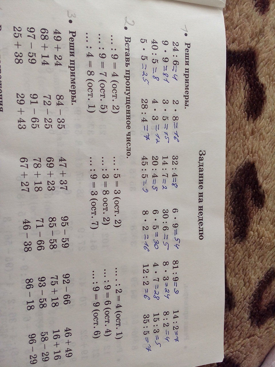 38:9=4(ост2). 68:9=7(ост5) 33:4=8(ост1) 17:5=3(ост2) 26:3=8(ост2) 34:9=3(ост7) 9:2=4(ост1) 58:9=6(ост4) 87:9=9(ост6)