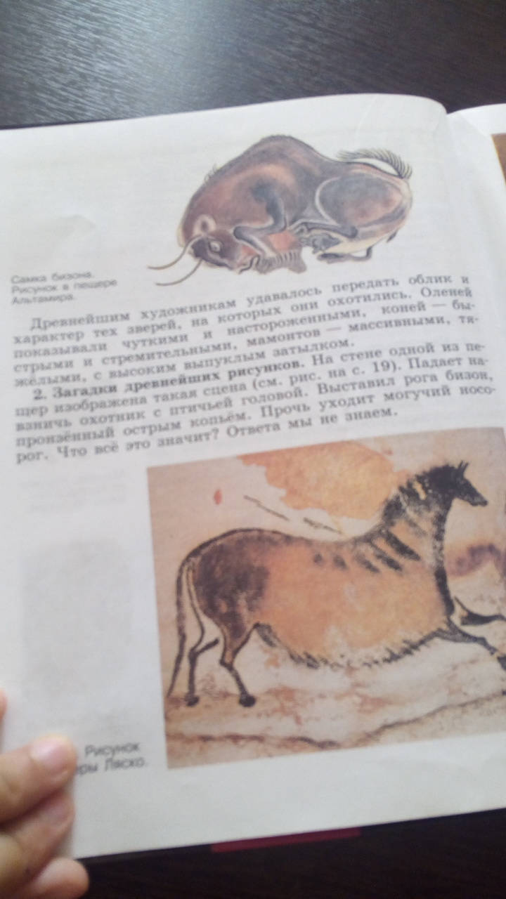 древнейшие люди рисовали на стенах своих пещер рисунки из природных красок. во время охоты они запоминались людям и потом они рисовали их. через много веков их находили археологи.