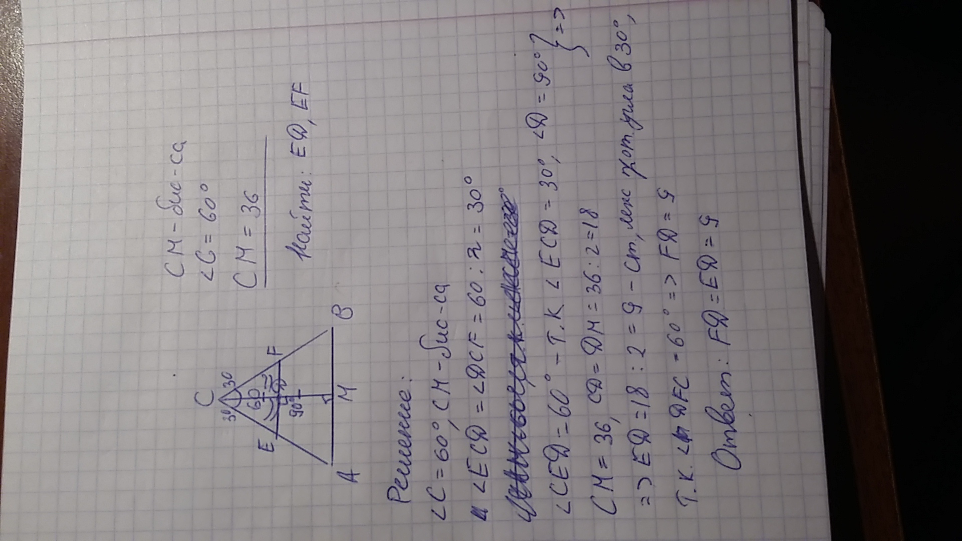 В треугольнике ABC с углом С равным 60° проведена биссектриса СМ. Найти расстояние от середины отрезка СМ до сторон АС и ВС, если СМ=36 см.