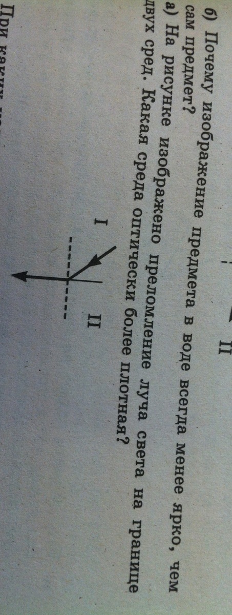 2 среда оптически более плотная. пример тому послужит переход из воздуха(оптически менее плотной среды) в воду(оптически более плотную среду), где луч приближается к нормали