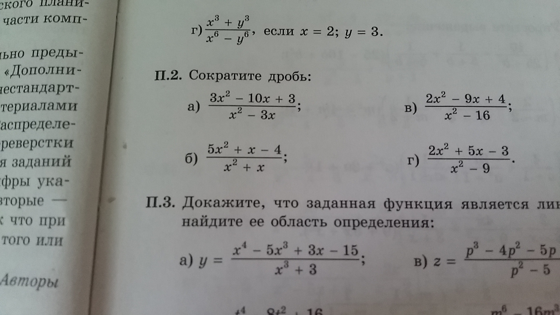 Во втором примере D=49, корни 0,5 и -3. В знаменателе разность квадратов.