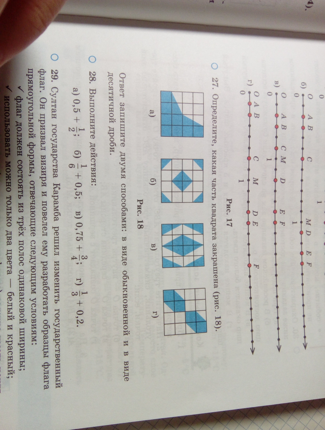 Определите,какая часть квадрата закрашена.Ответ запишите двумя способами:в виде обыкновенной дроби и в виде десятичной дроби