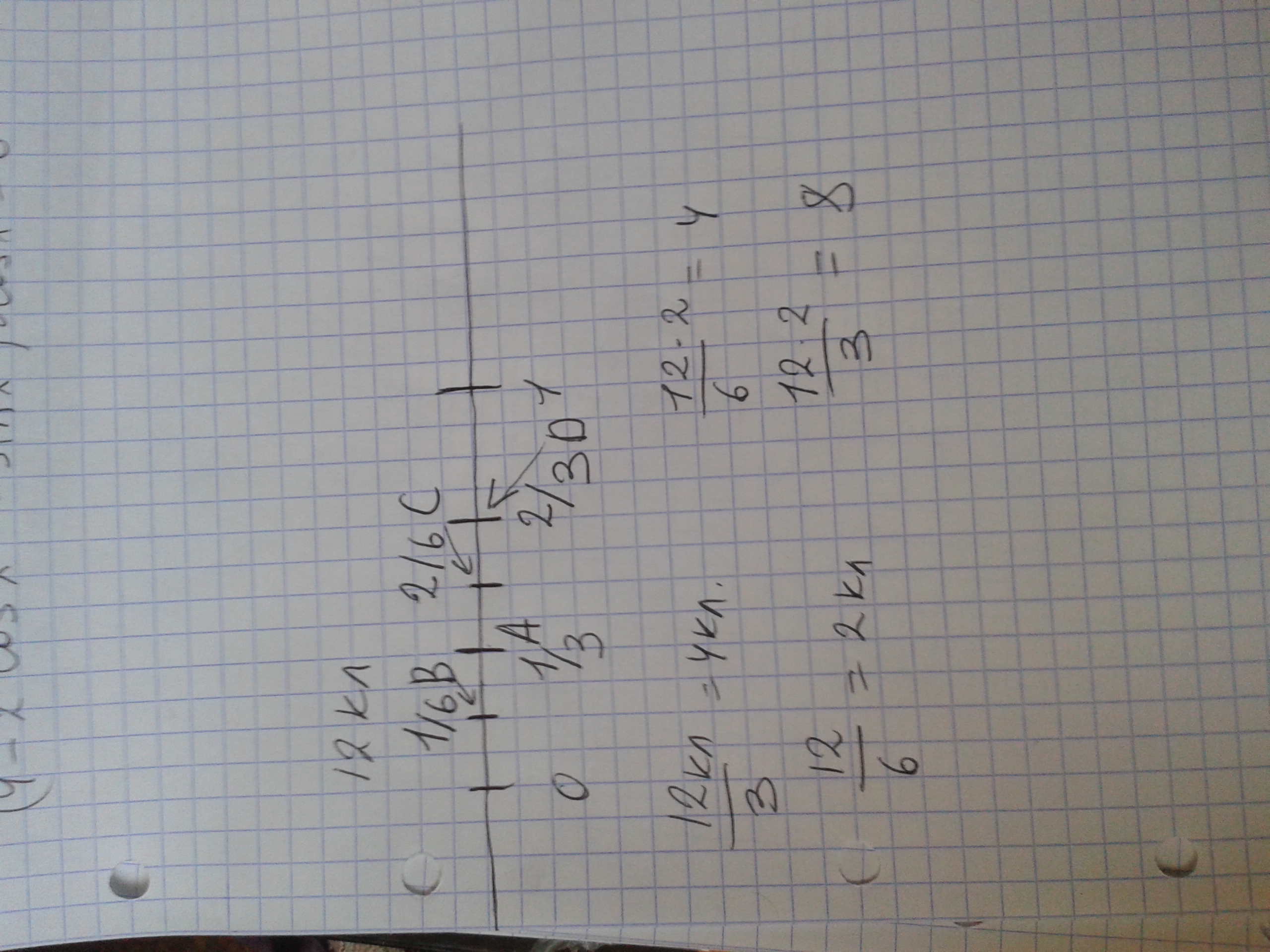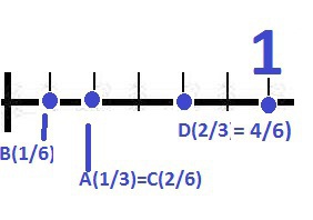 Смотрим на дроби - знаменатель = 6, значит единичный отрезок выбираем кратное 6 клеткам (3 см или 6 см ).