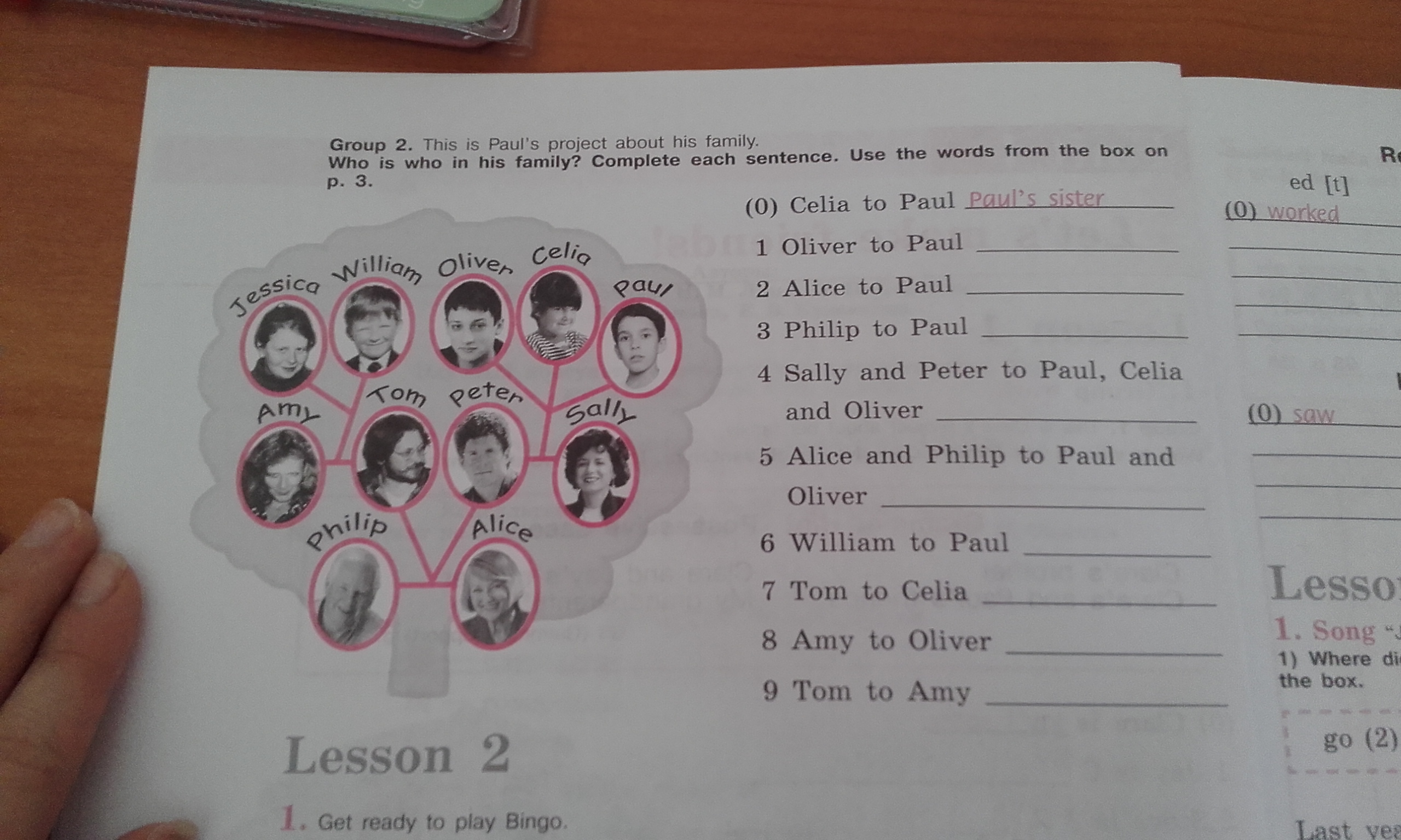 очень срочно нужно не перевести,а заполнить пропуски. Рядом есть дерево со всей семьей.Зарание спасибо.