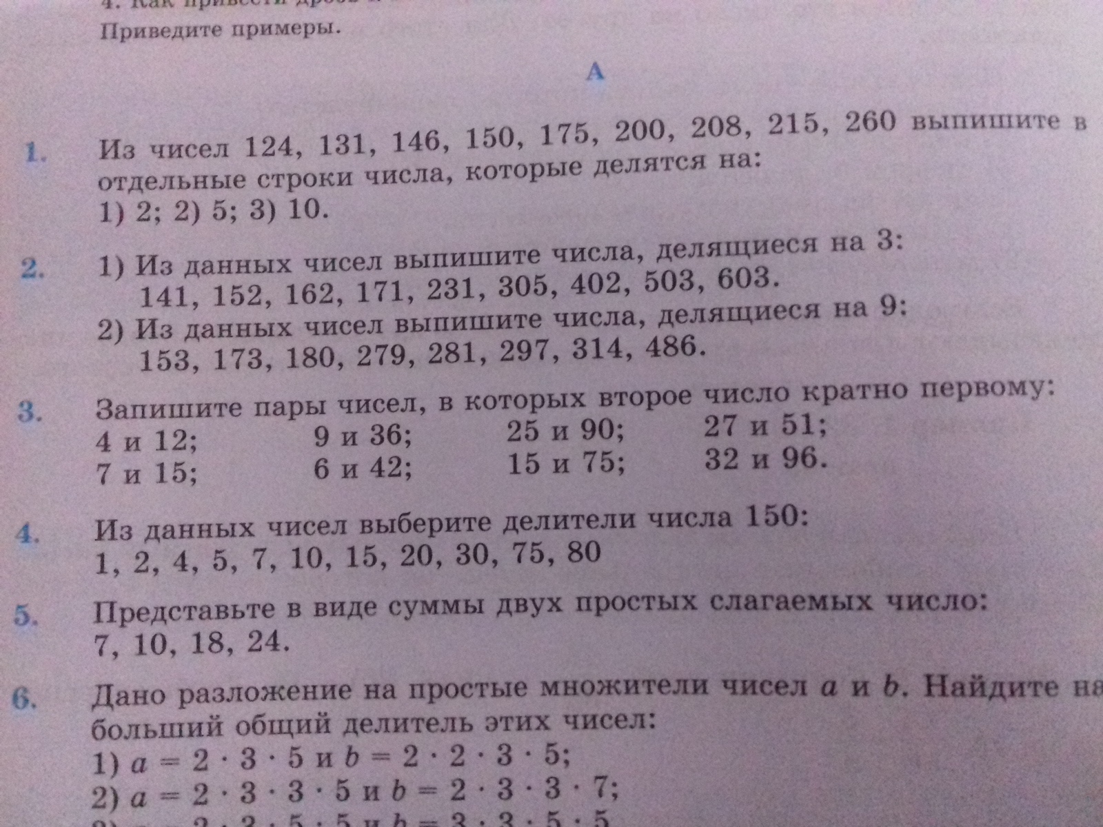 Если второе число кратно первому, то второе можно разделить на первое без остатка. В этом примере ответ такой: 4 и 12; 9 и 36; 6 и 42; 15 и 75; 32 и 96.