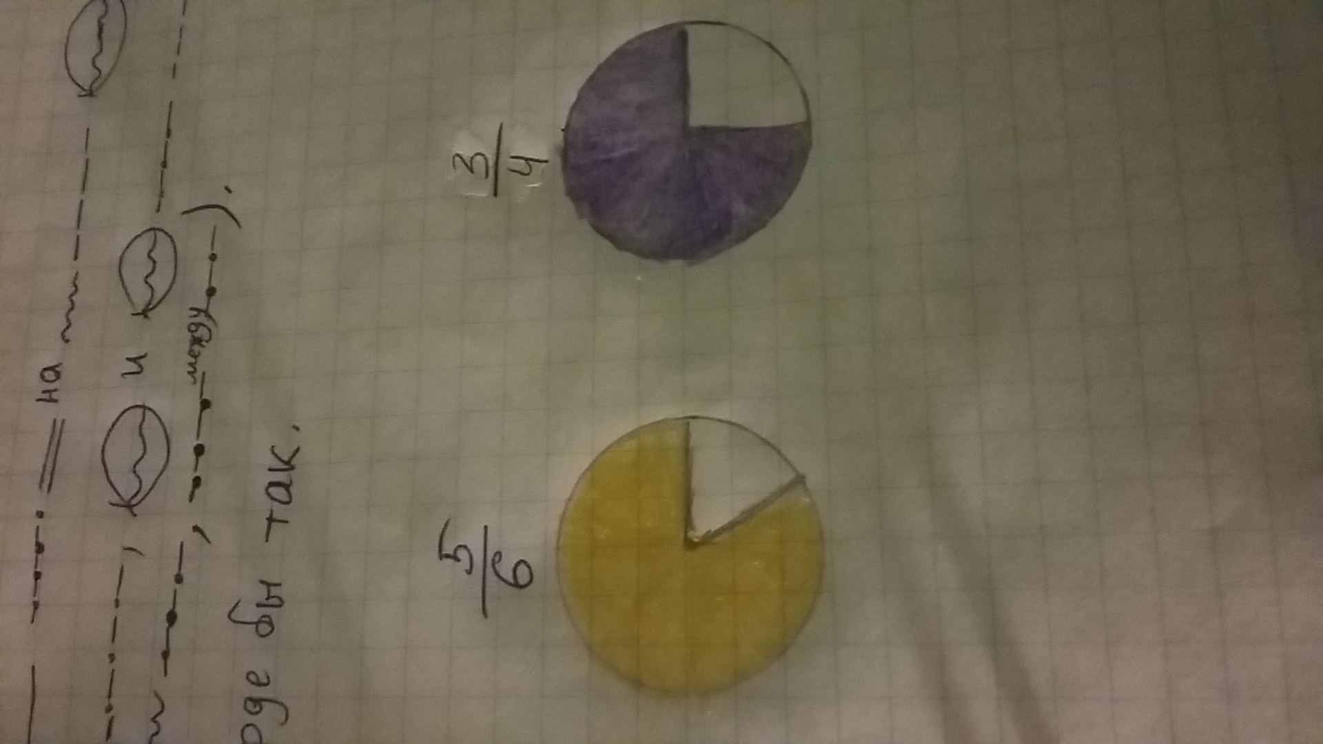 Я так понимаю что нужно раскрасить три четвертых и пять шестых груга?