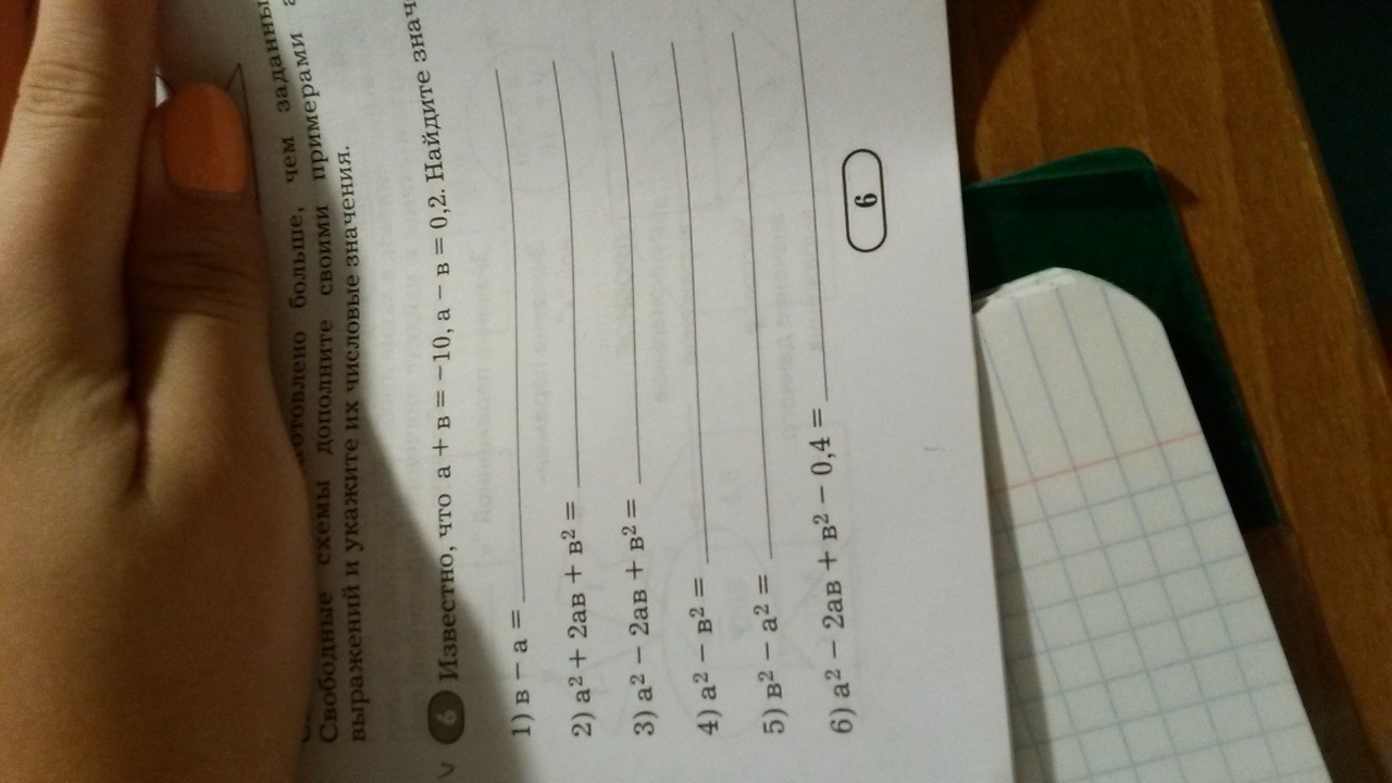 6) а²-2ав+в²-0,4=(а-в)²-0,4=(0,2)²-0,4=0,04-0,4= -0,36