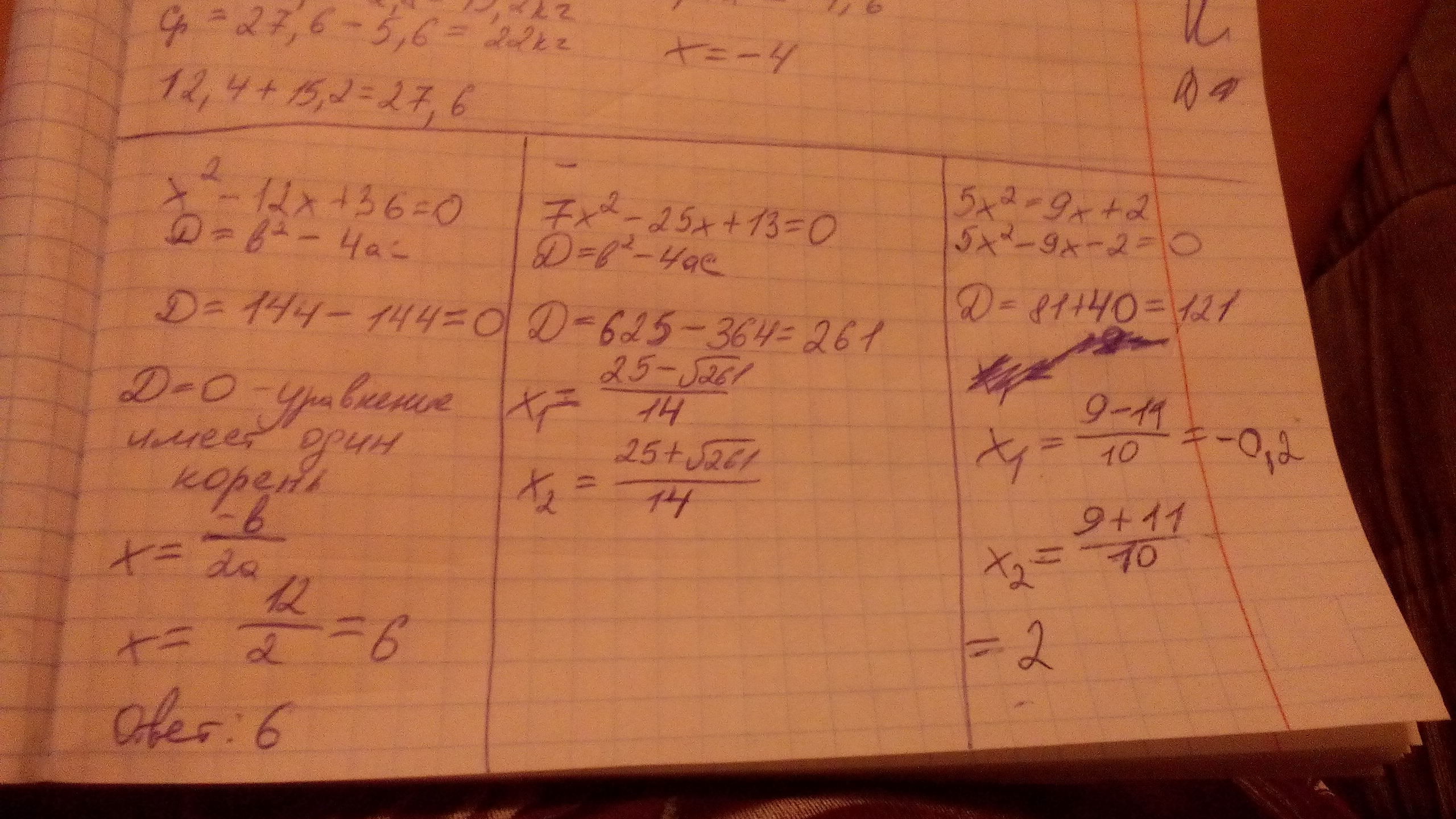 формула х первого и второго =-б-+√D/2a