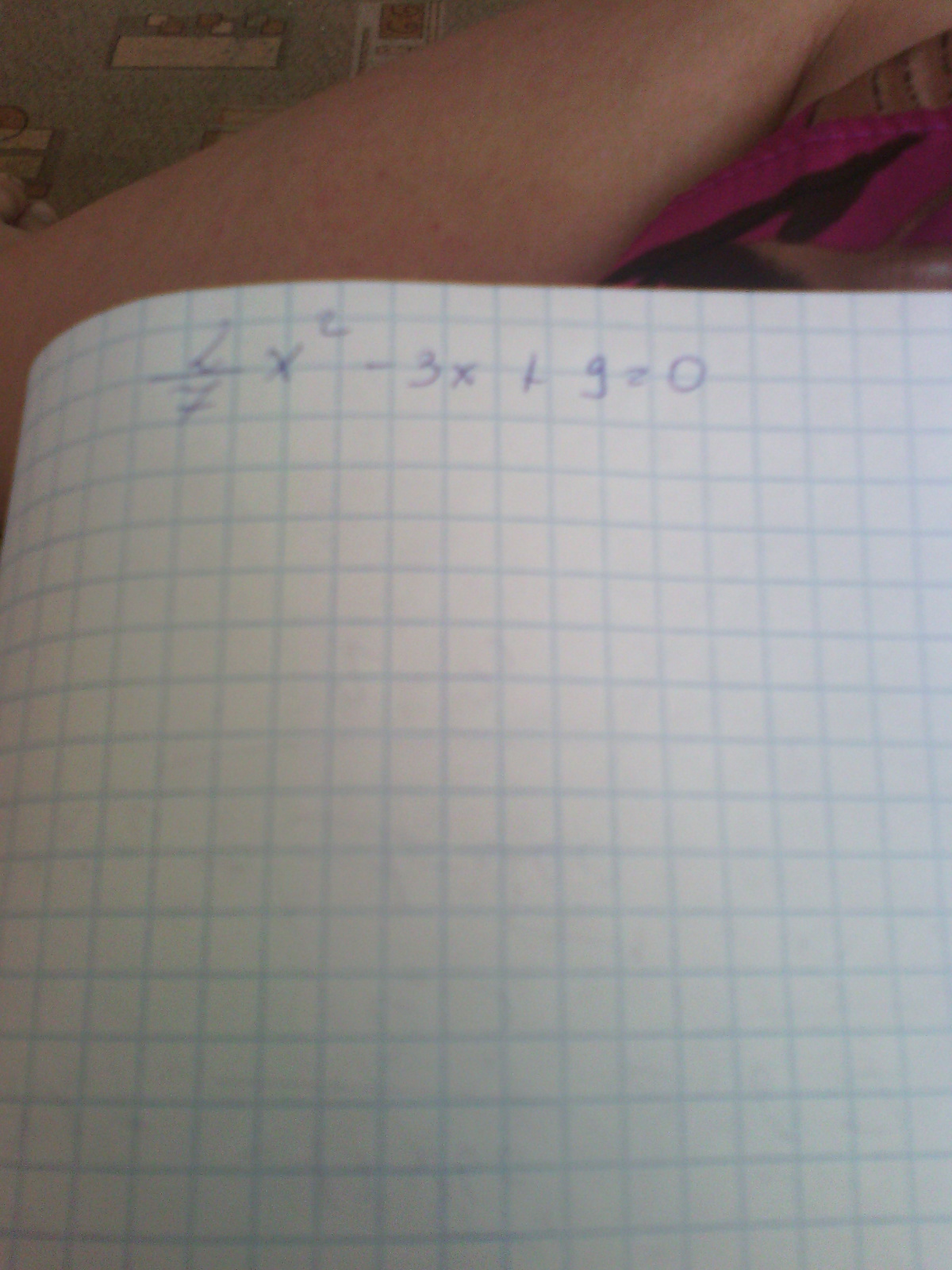 Умножая уравнение на 7, приходим к равносильному уравнению 2*x²-21*x+63=0. Дискриминант D=(-21)²-4*2*63=-63<0, поэтому действительных решений это уравнение не имеет. Ответ: действительных решений нет.