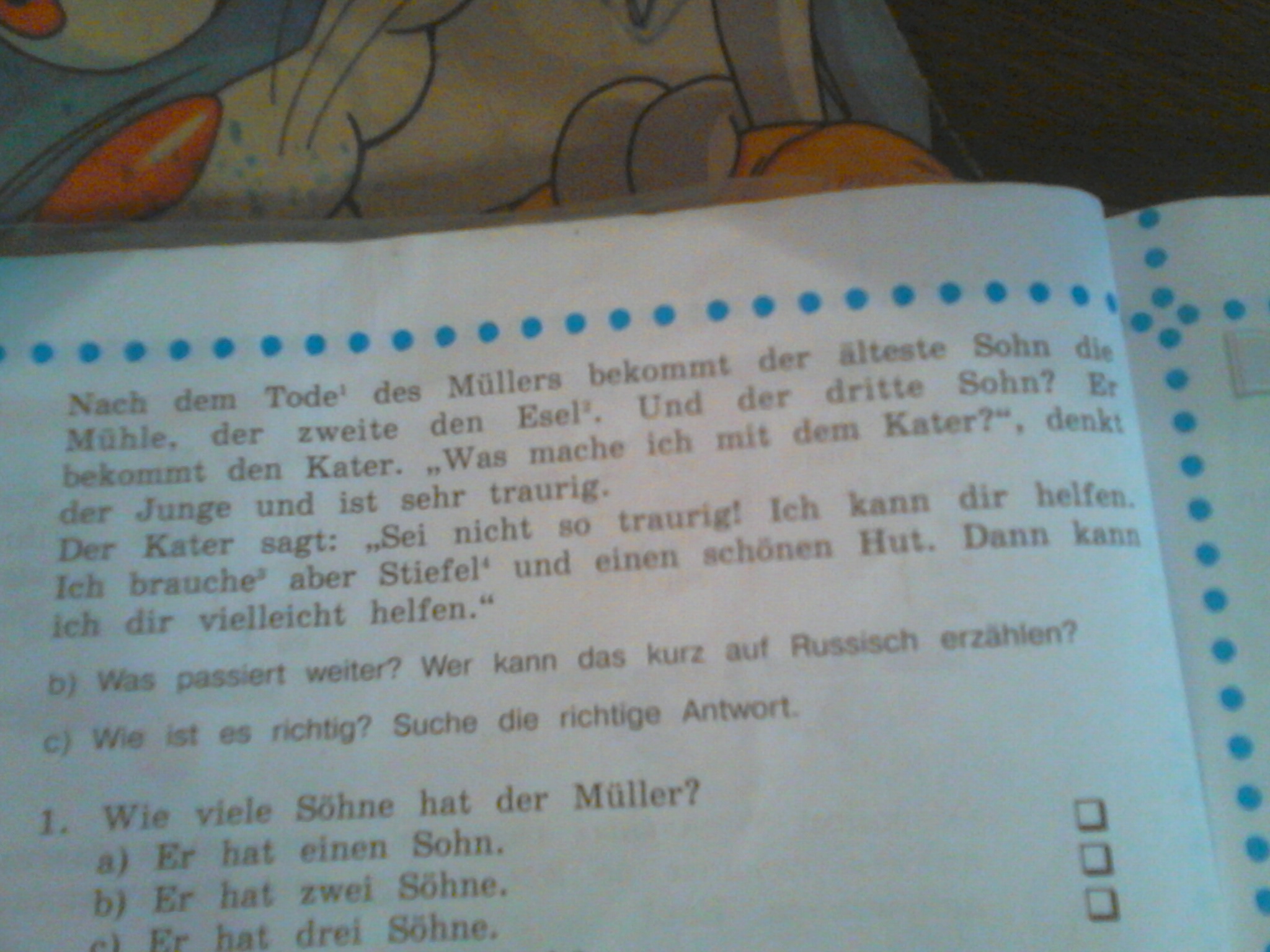 После смерти мельника старший сын получил мельницу,а средний осла. А что же младший сын? Он получил кота."Что я буду делать с котом?",думал юноша и был очень печален.