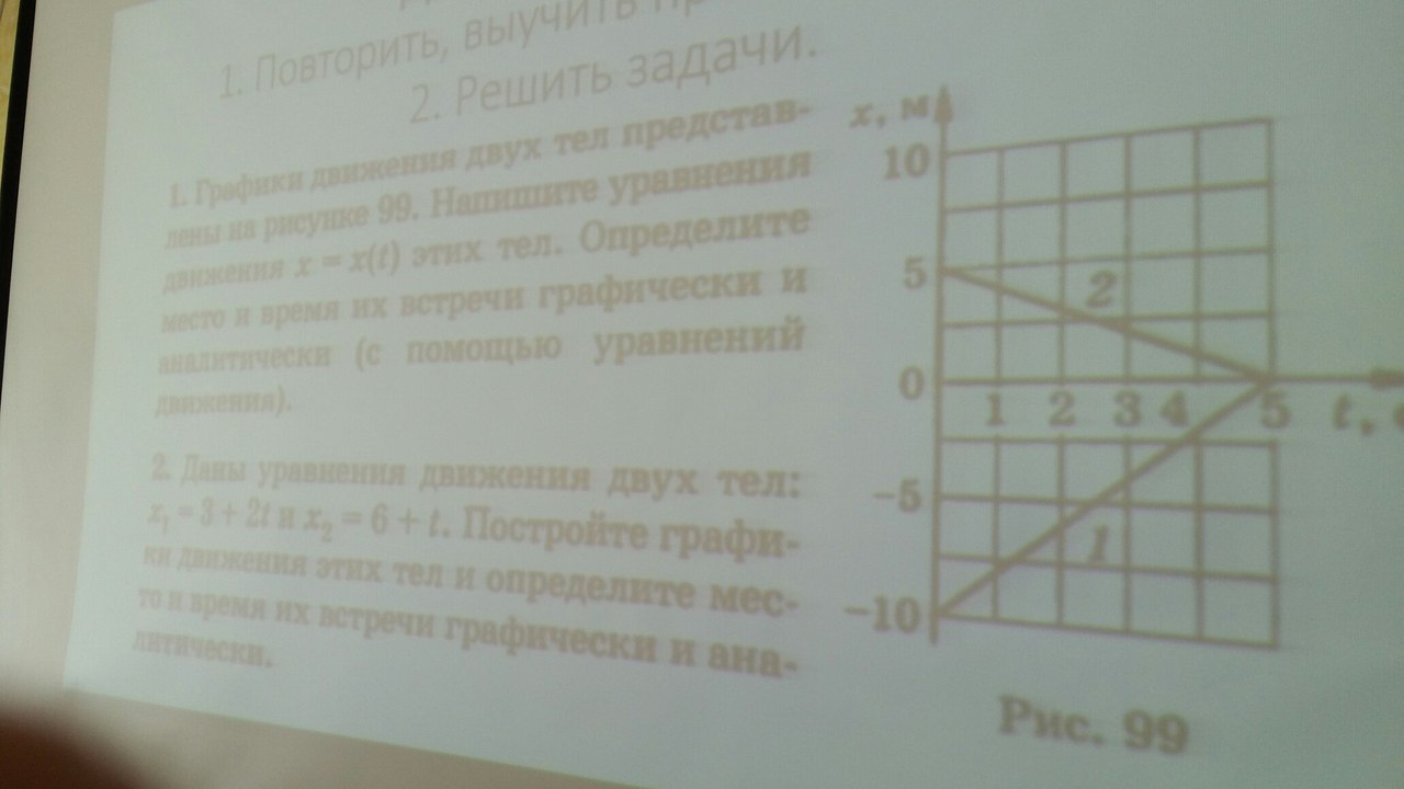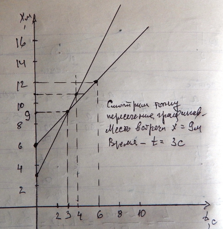 Смотри график - точка пересечения графиков и есть точка и время встречи x = 0 м t = 5с