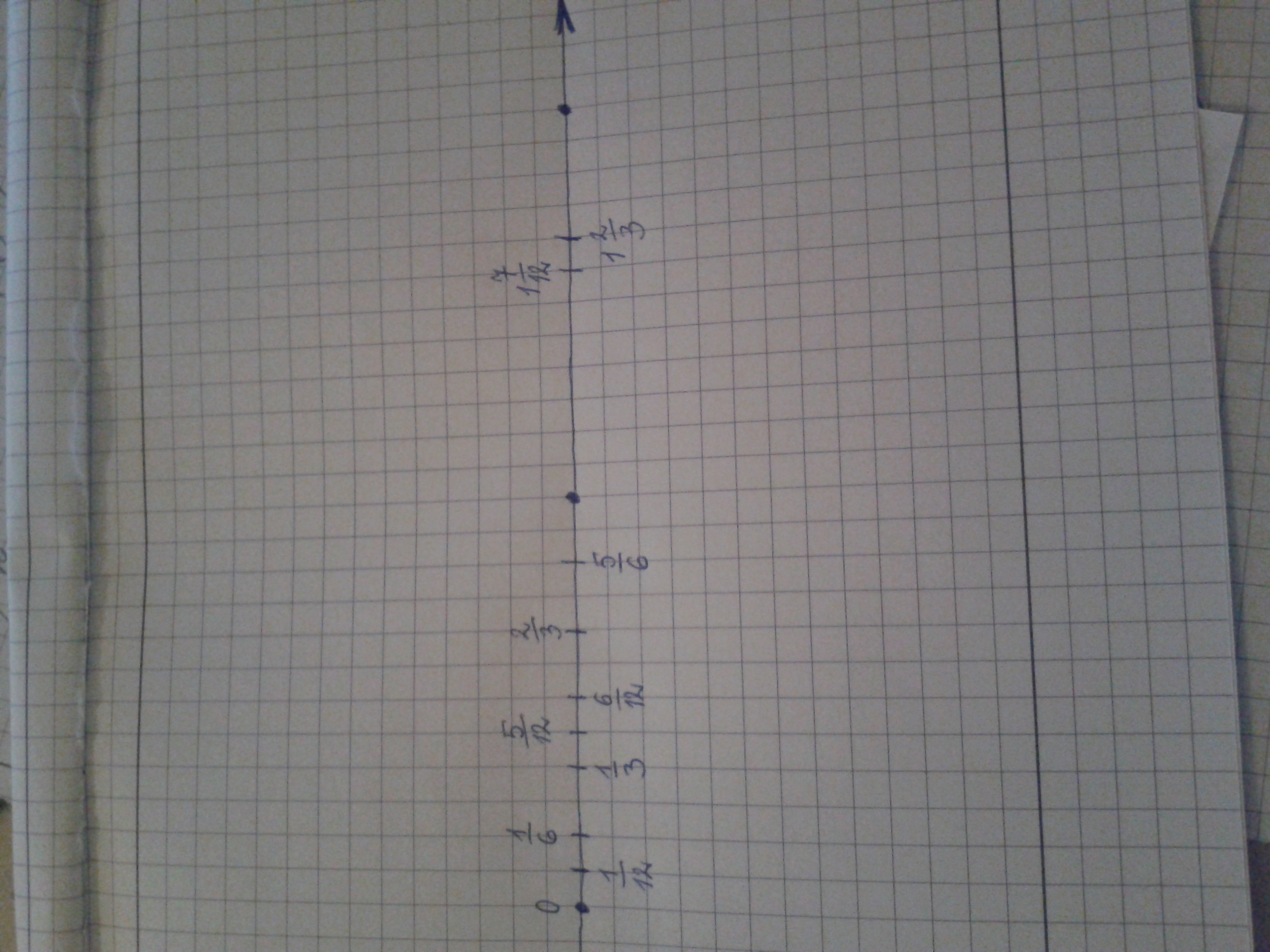 Начертите координатную прямую (единичный отрезок,равный 12 клеткам) отметьте на ней числа:1/6, 5/6, 1/3, 2/3, 1 целая 2/3, 1/12, 5/12, 1 целая 7/12, 1/2,