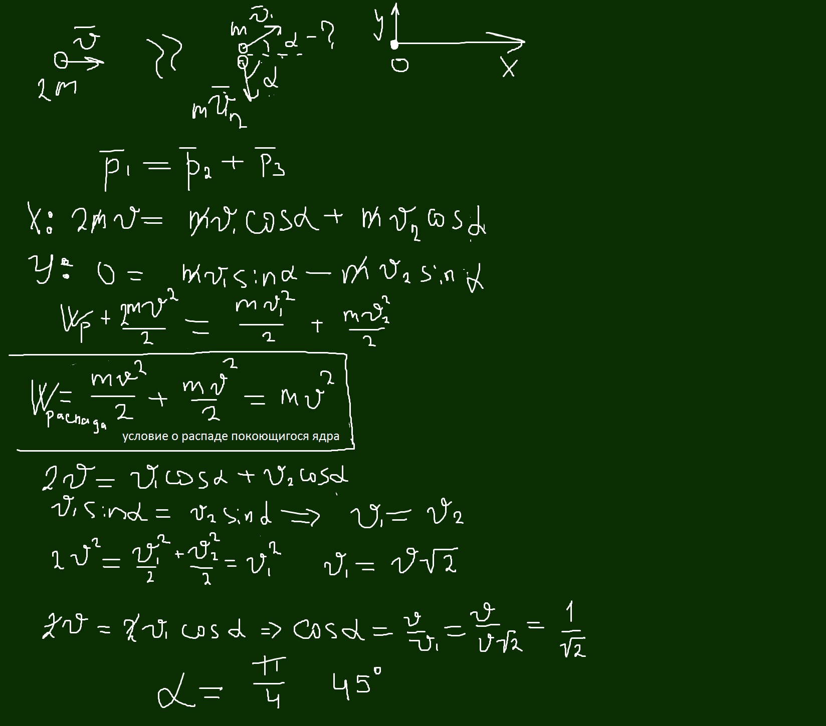 Определите максимально возможный угол а между скоростью ядра и скоростью
