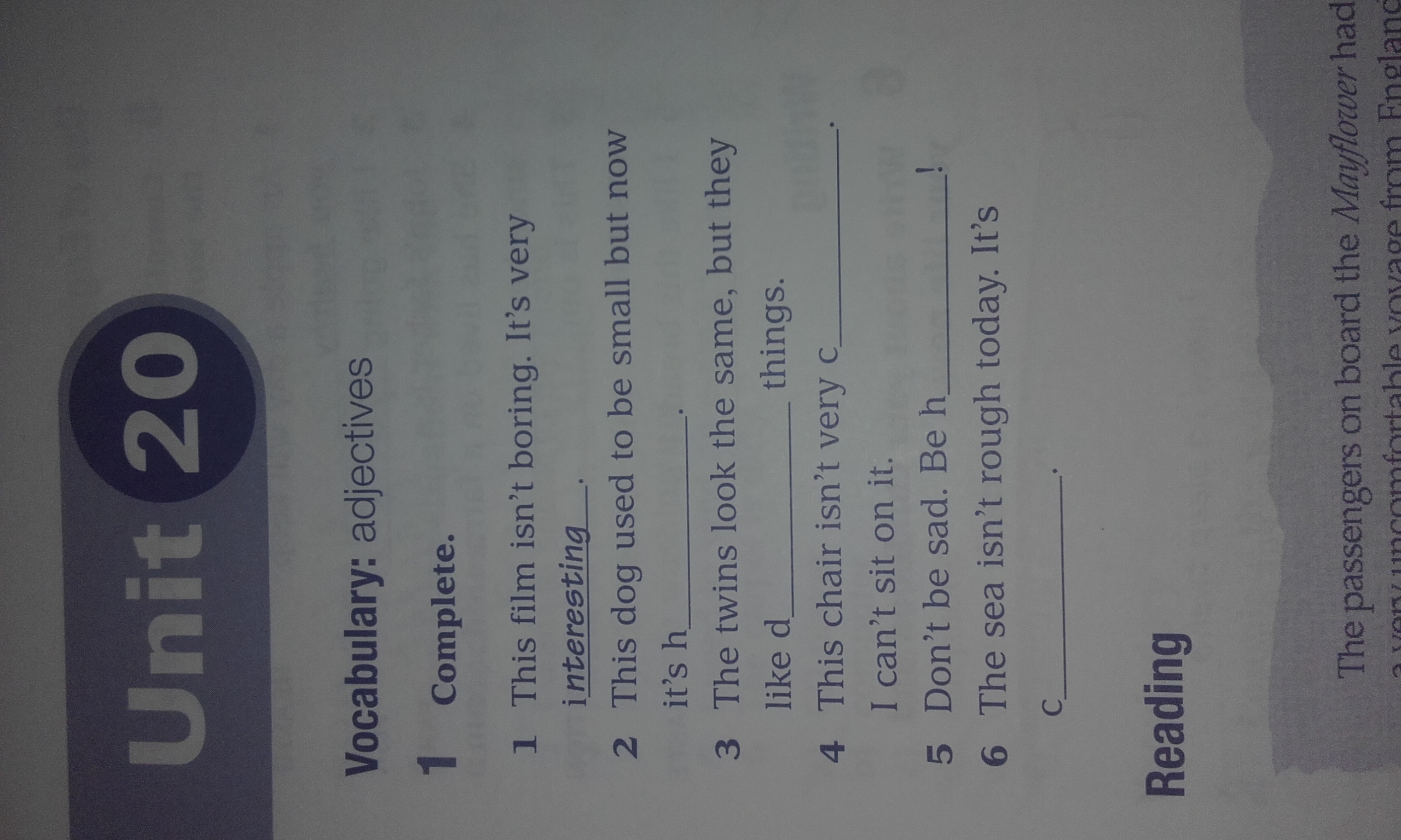 4comfortable2huge3diferent5happe