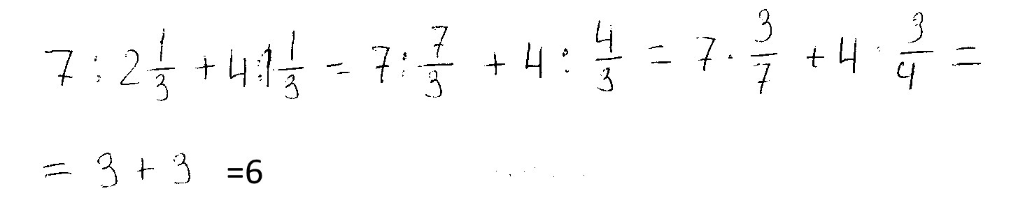 Как решить 7 разделить на 2 целых одну третью плюс 4 разделить на 1 целую одну третью, все расписывая???