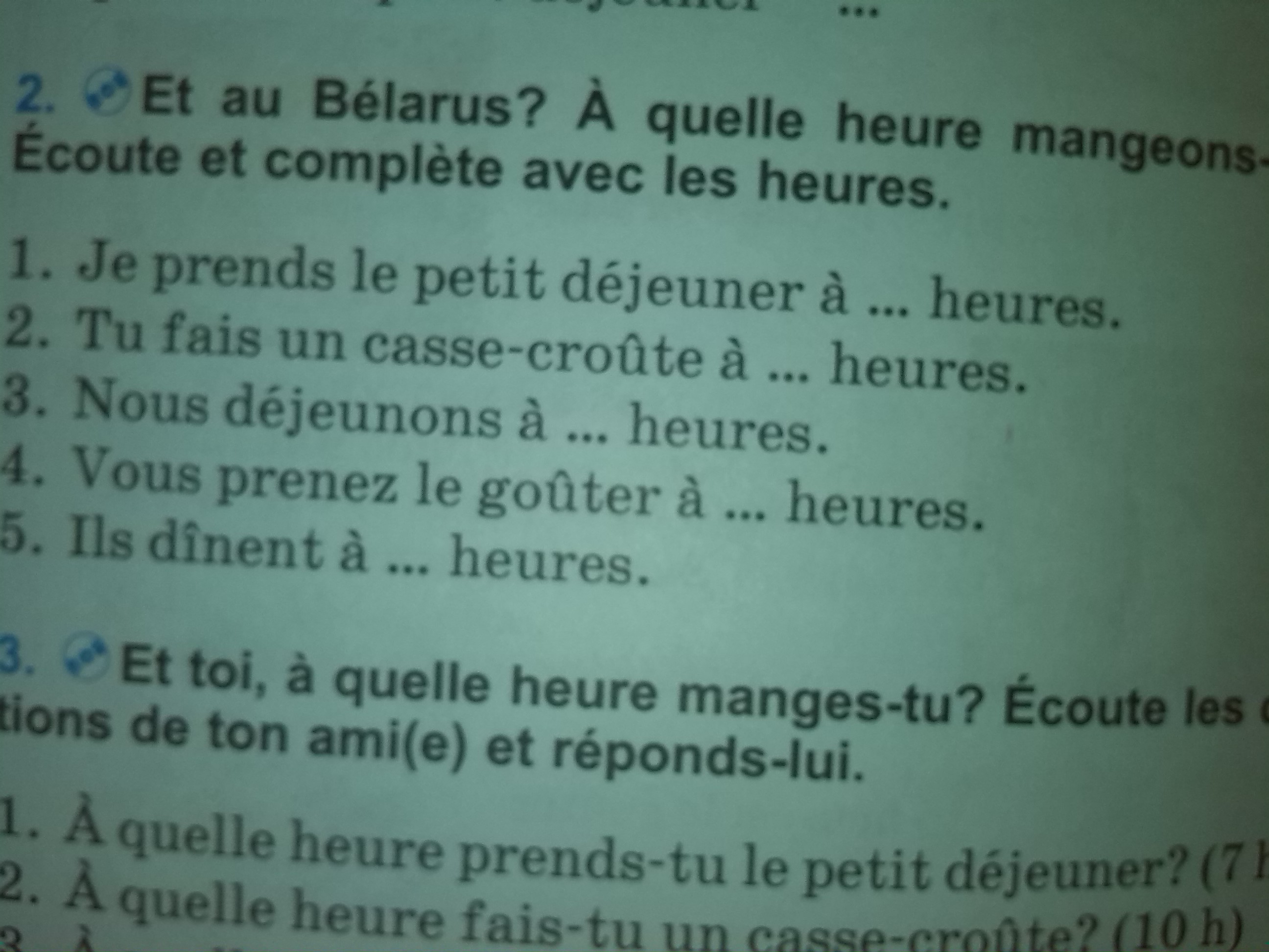 нужно послушать диск прилагающийся к учебнику и по полученной информации записать время