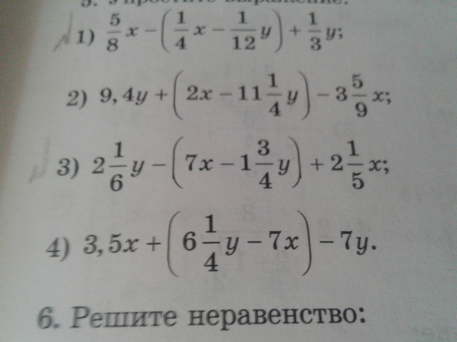 2 1/6у-7х+1 3/4у+2 1/5х=(2 1/6 у+ 1 3/4у )-(7х +2 1/5х)=(2 2/12 у+1 9/12у)+9 1/5х=3 11/12 у+ 9 1/5х