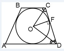 2) так как точка O — точка пересечения биссектрис углов трапеции, то ∠ODF+∠OCF=1/2∙(∠ADC+∠BCD)=90º;
