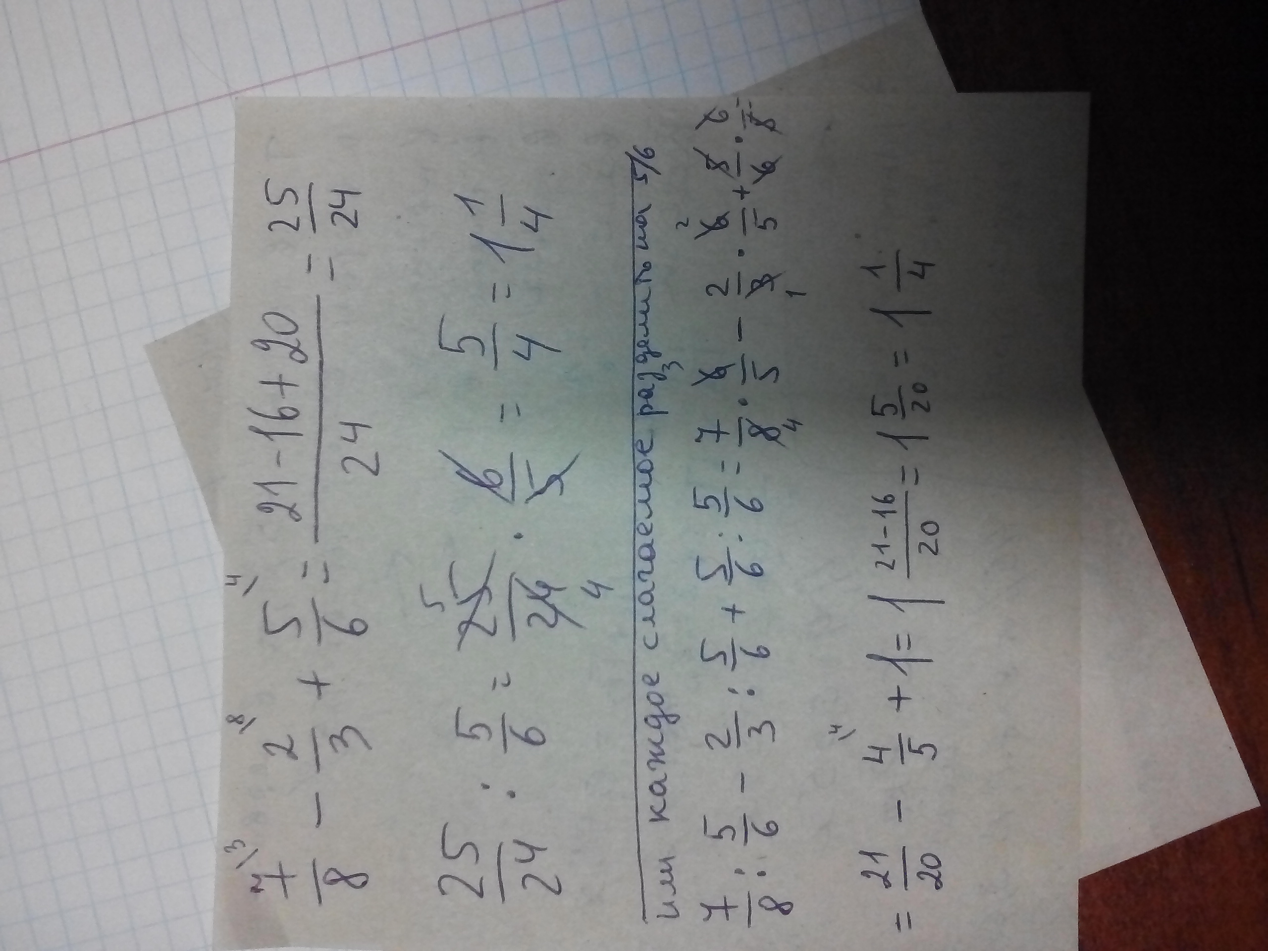 Скобки приводим к общему знаменателю(число, на которое будет делиться каждый из знаменателей).