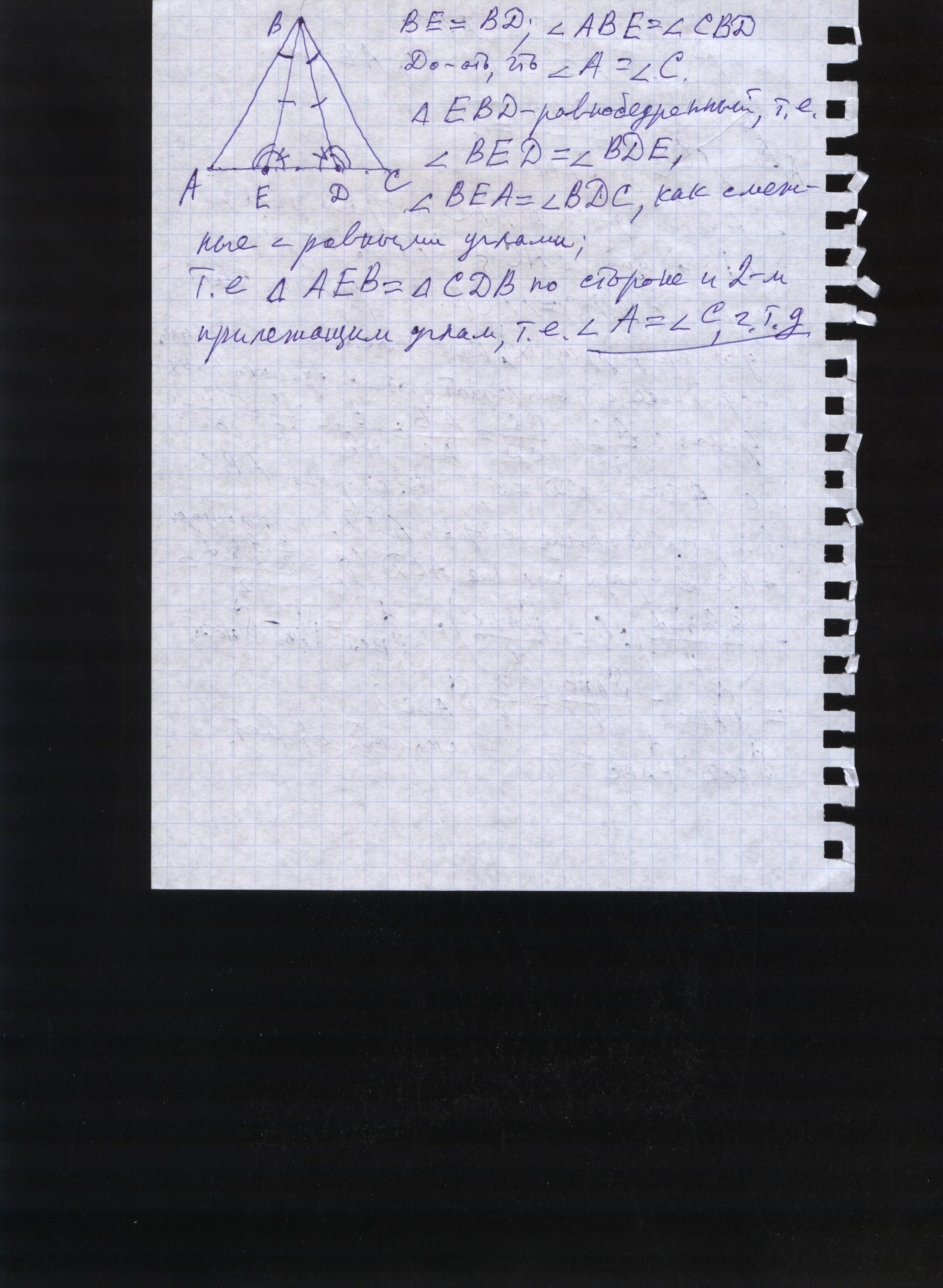 В треугольнике ABC на стороне AC отмечены точки E и D ( причём точка E лежиn между A и D ). Известно что BE =BD и угол ABE = углу CBD . докажите что угол A = углу C