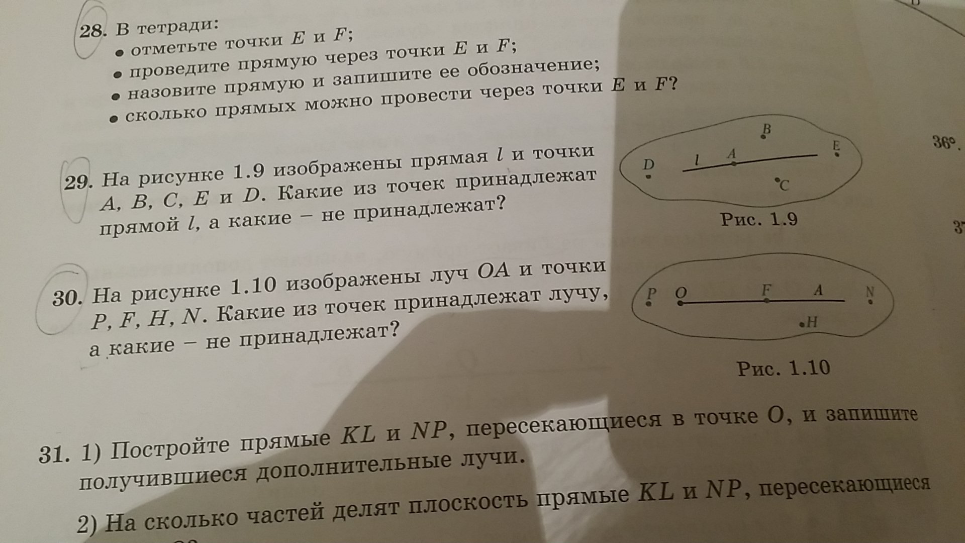 30. Точки F,N принадлежат, точки H,P не принадлежат