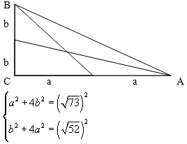1)ДАНО прямоугольный треугольник, если медианы, проведенные к катетам равно √52 и √73. Найдите гипотенузу прямоугольного треугольника . вот ответы