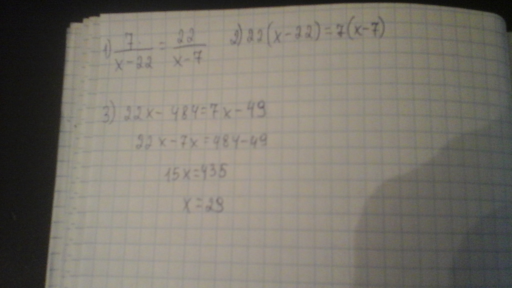 это пропорция,а значит произведение крайних членов равно произведению средних,т.е умножаем числитель первой дроби на знаменатель второй и числитель второй на знаменатель первой