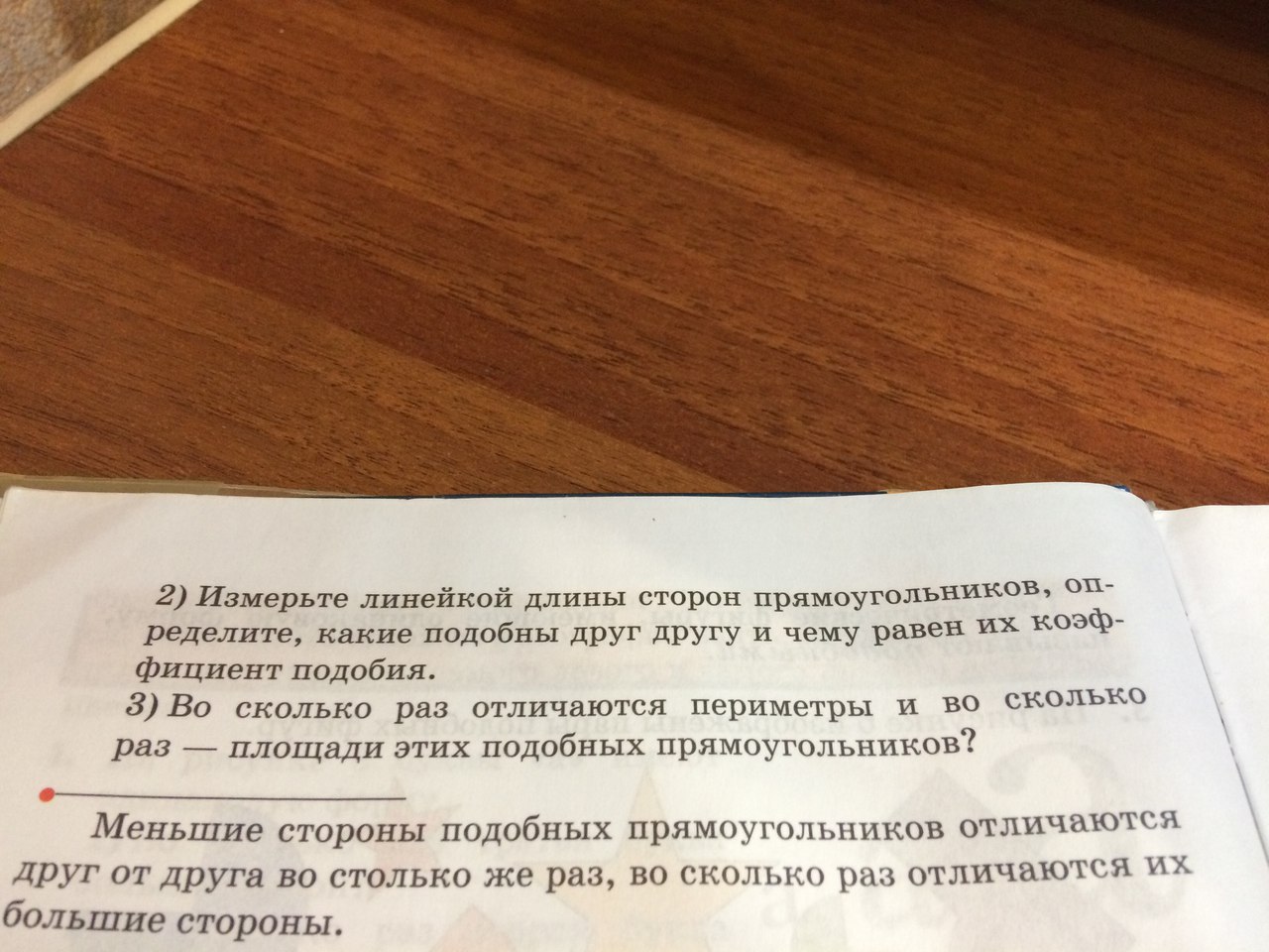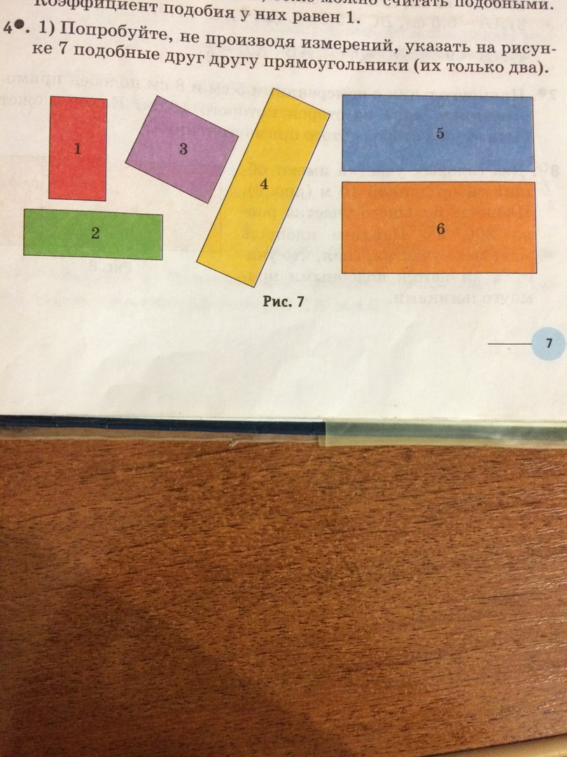 1) Попробуйте, не производя измерений, указать на рисунке 7 подобные друг другу прямоугольники (их только два).