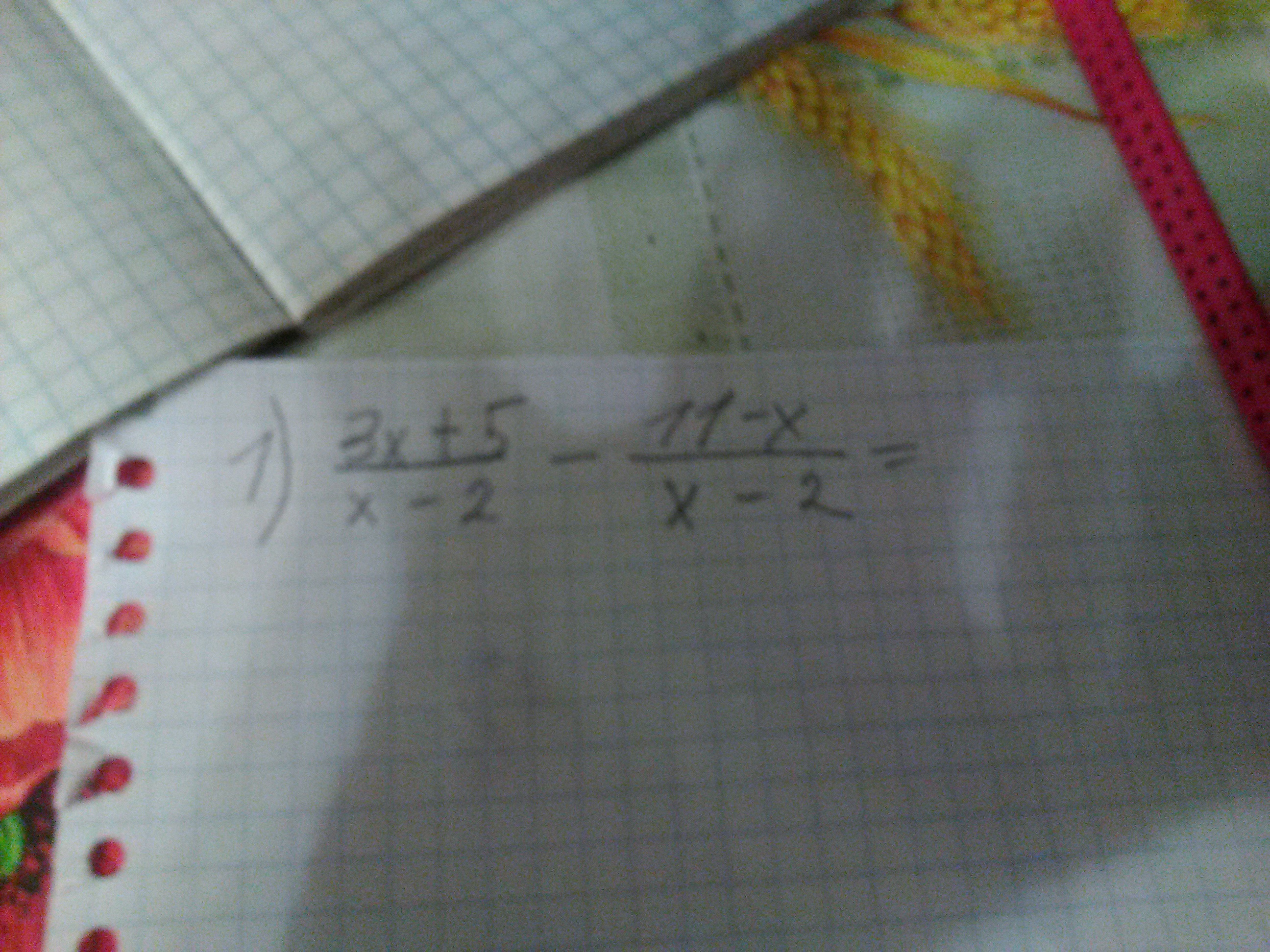 (3x+5)/(x-2)-(11-x)/(x-2)=(3x+5-11+x)/(x-2)=(4x-6)/(x-2)=2(2x-3)/(x-2);