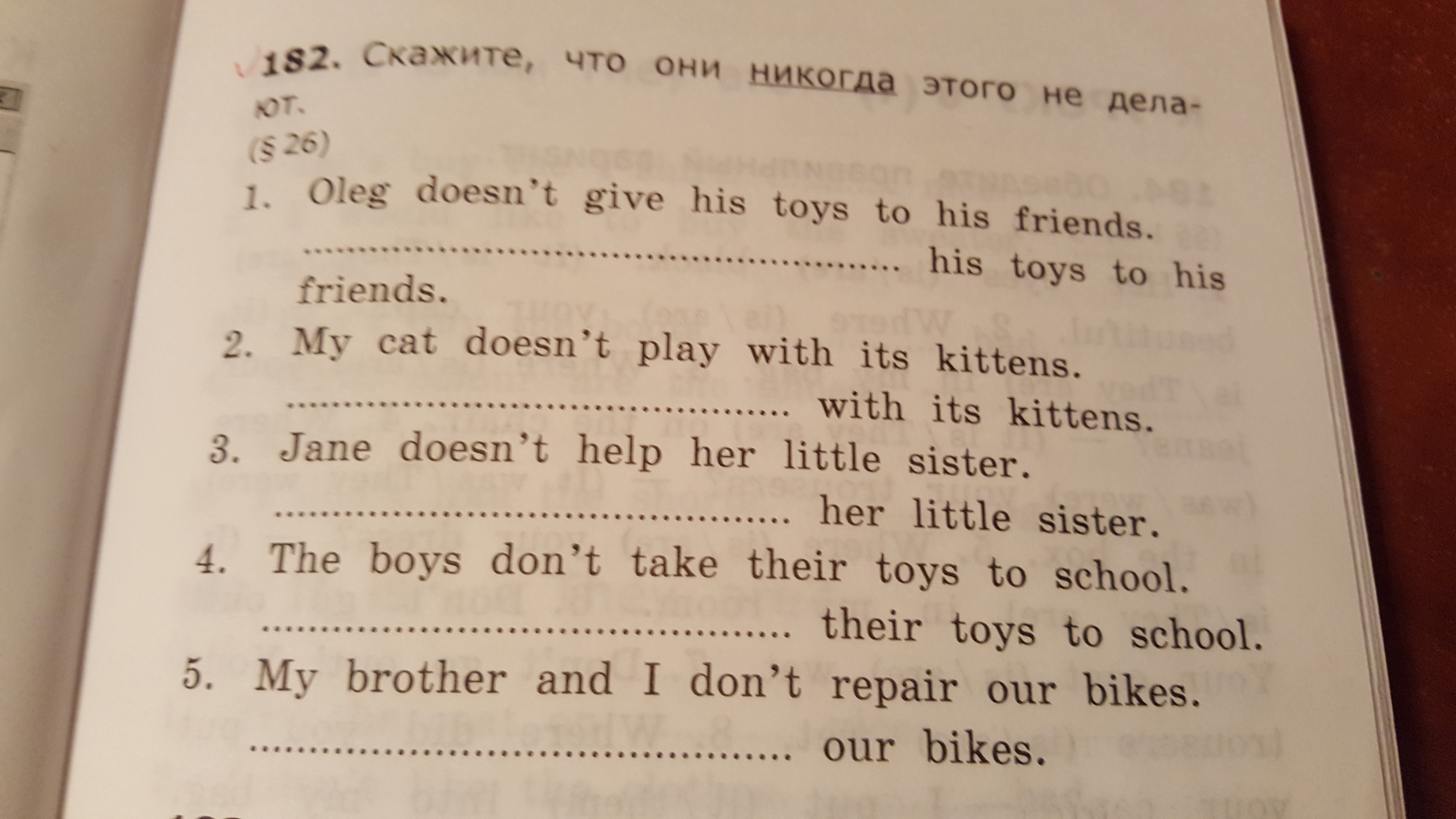 4. The boys never take their toys to school.