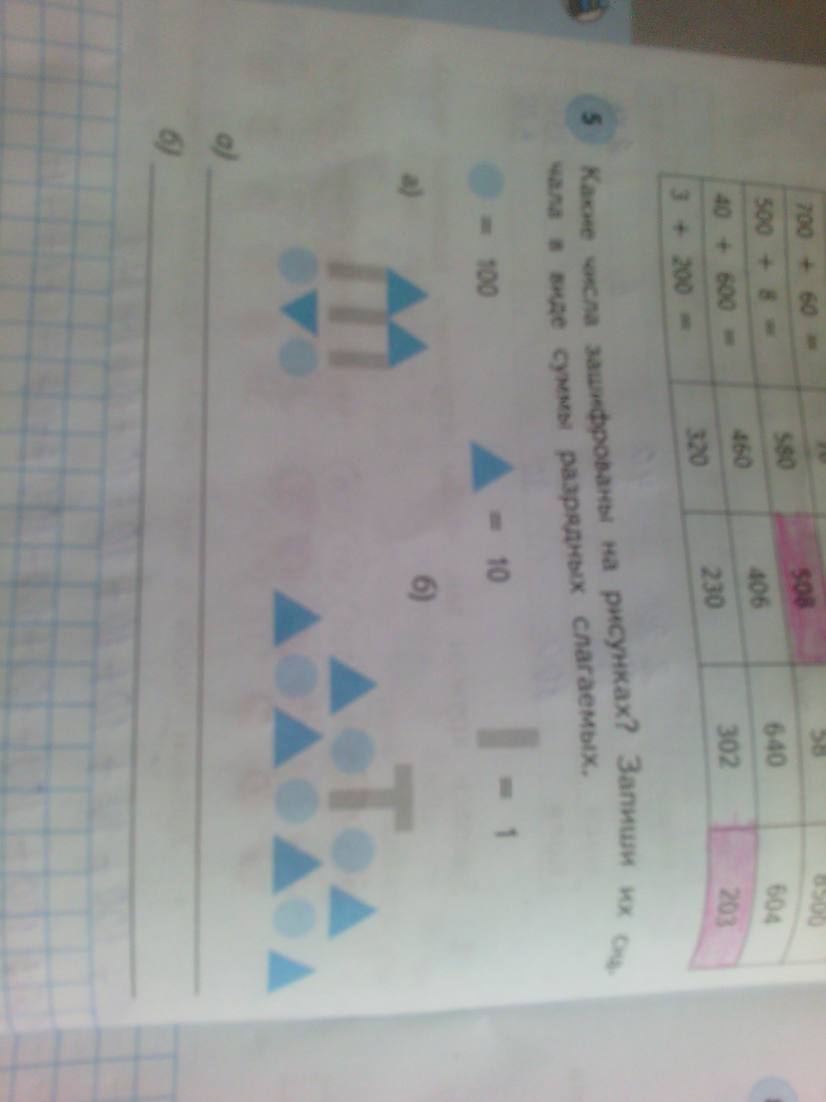 какие числа зашифрованы на рисунке?Запиши их сначала в виде суммы разрядных слагаемых.