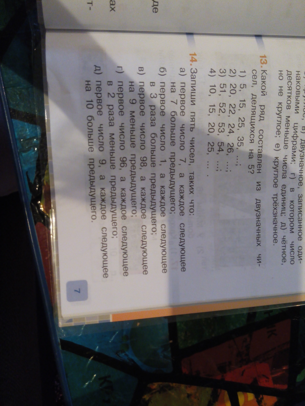 а)7,14,21,28,35б)1,3,9,27,81в)98,89,80,71,62г)96,48,24,12,6д)не вижу