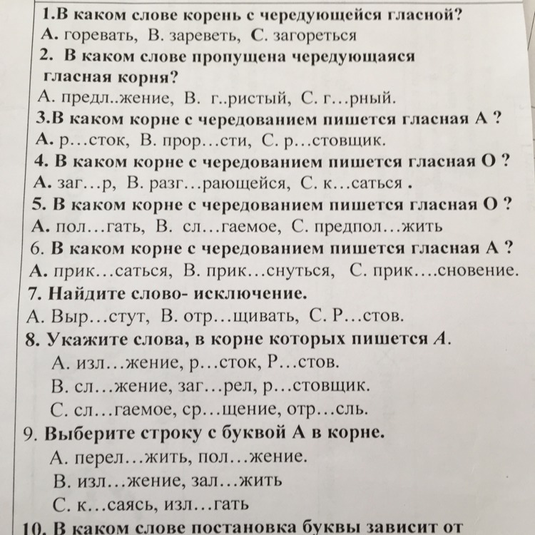 1 - С; 2 - А ; 3 - В ; 4 - В ; 5 - С ; 6 - А ; 7 - С ; 8 - С ; 9 - С ; 10 - ? ( не видно)