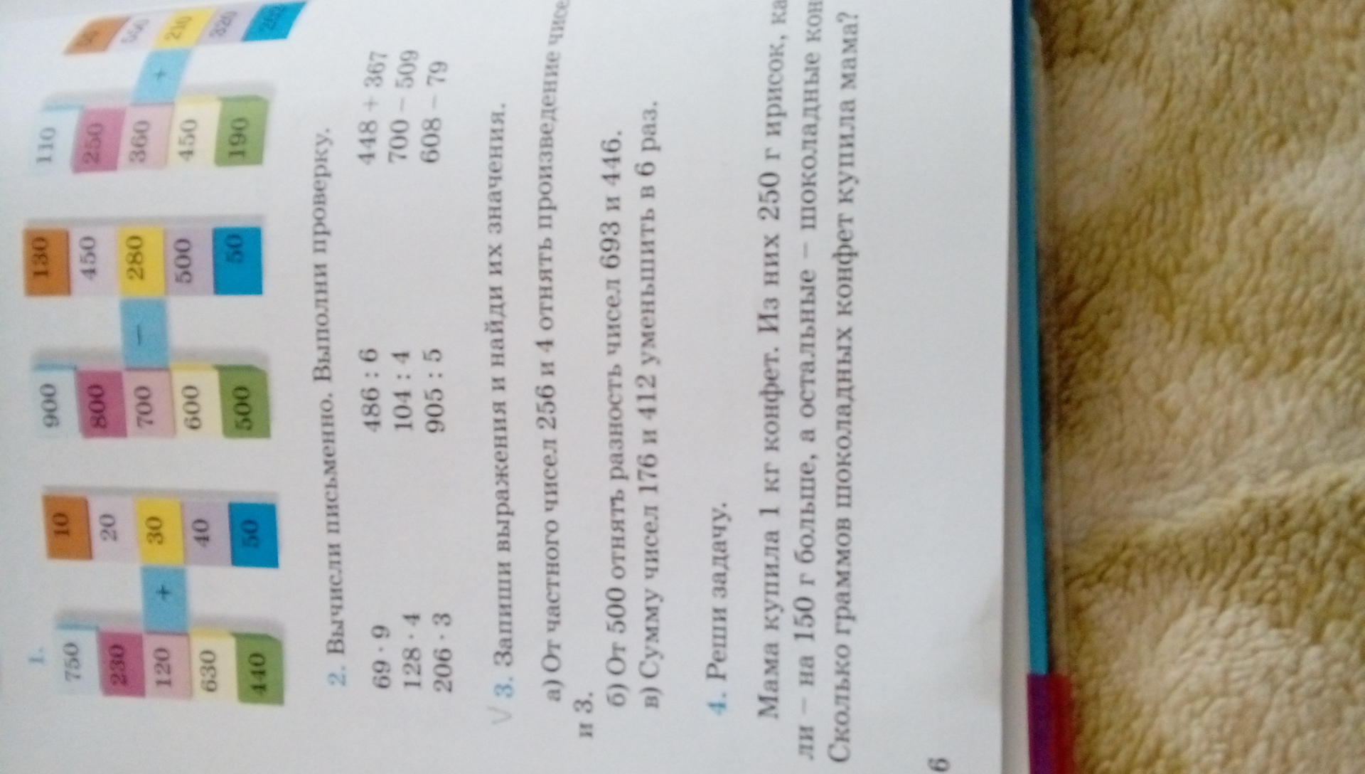 запиши выражения и найди их значения : от частногочисел 255 и 4 отнять. произведение чисел15 и 3. От500 отнятьразность чисел 693и 446. Сумму чисел 176 и 412 уменьшить в 6 раз.