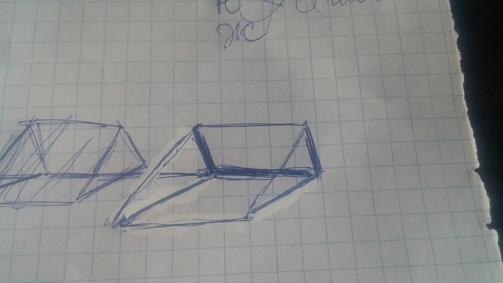 На каркас напаяли две проволоки-синюю и черную(верхний рисунок)Нарисуйте синюю проволоку на нижнем рисунке