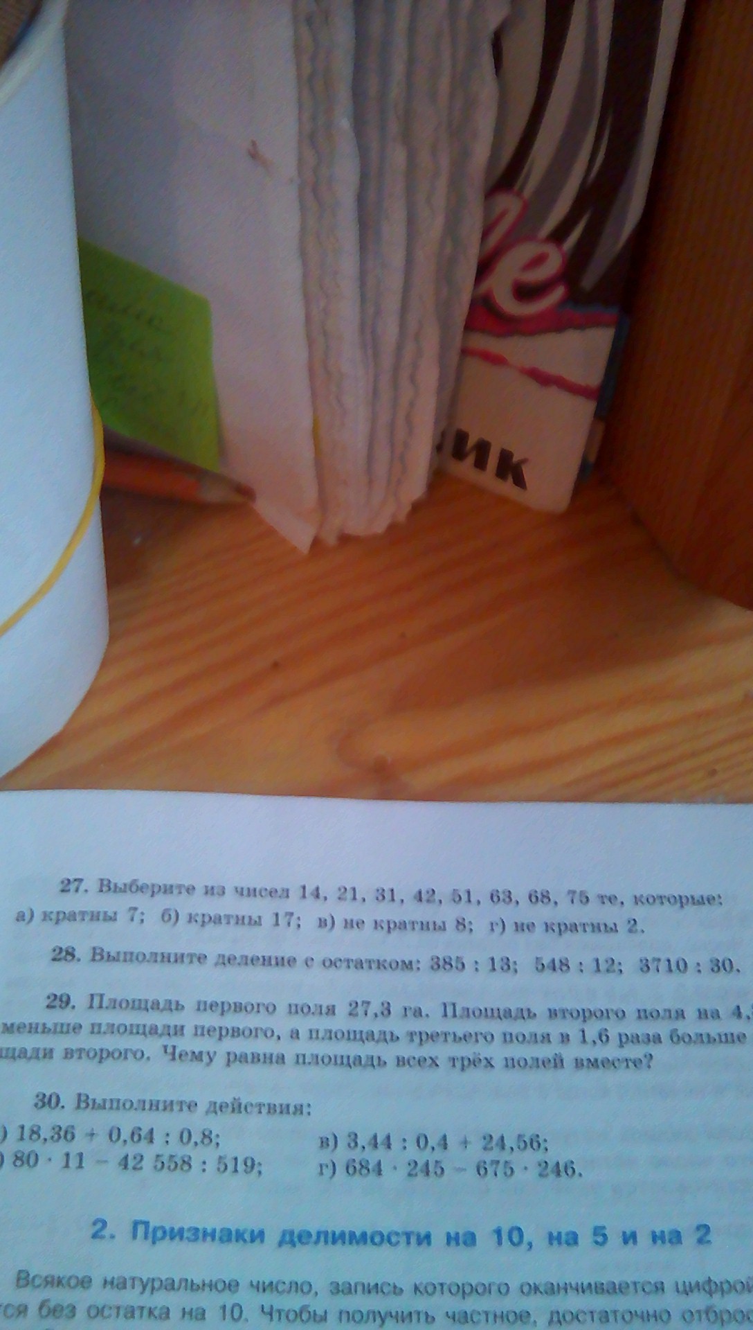 кратные 7.....14 21 42 63.... кратные 17 ..51 и 68. не кратные 8 они все числа идут.....не кратные 2.....21 31 51 63 75