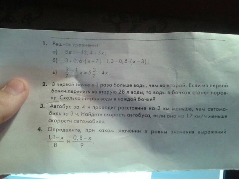 1 задание буква б): 3+0.6*(x+7)=1,3-0,5*(x-3)