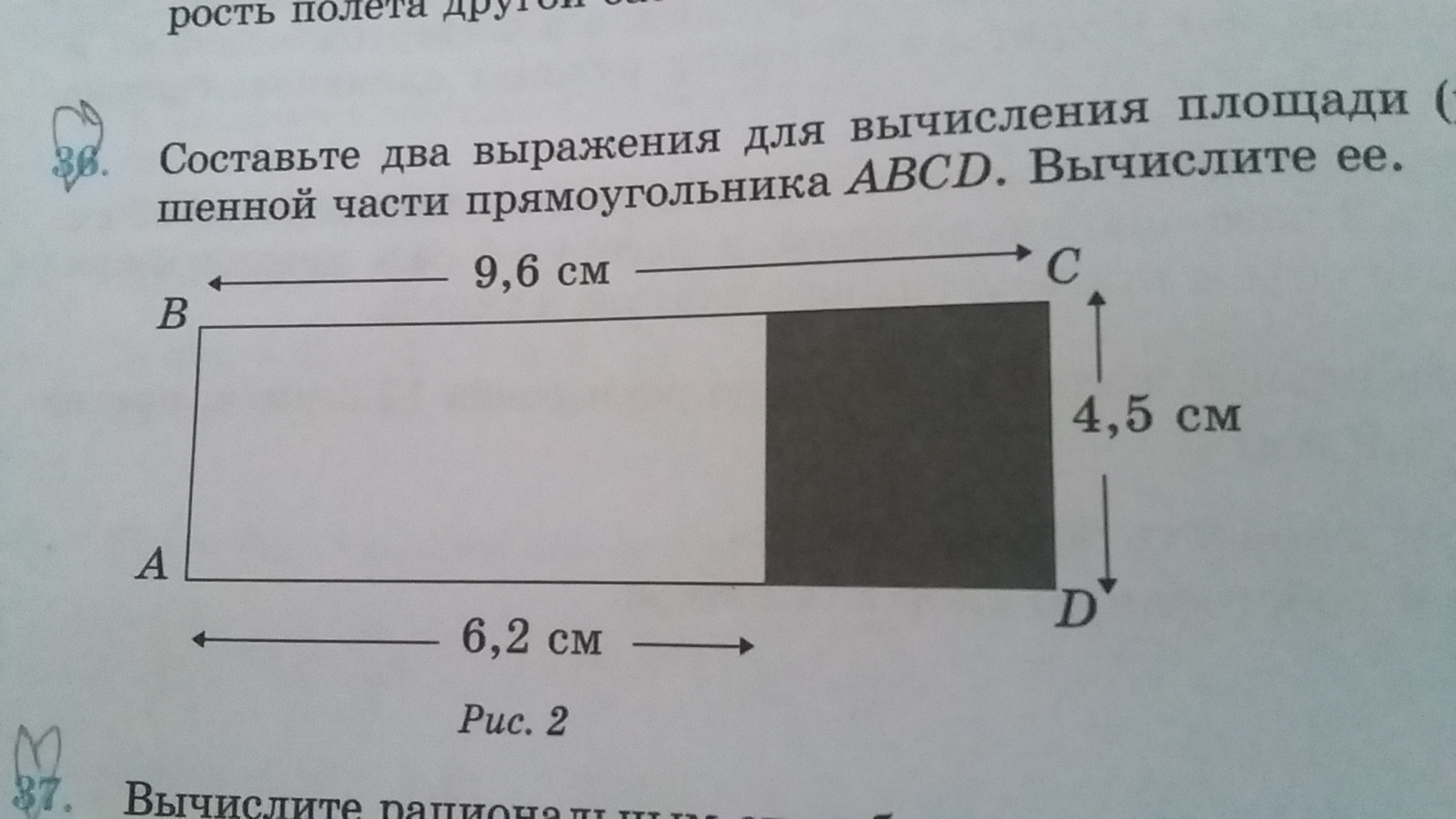 Составте два выражения для вычисления площади закрашенной части прямоугольника АВСD. Вычислите её