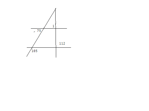 180-112=68 - угол соответственный 1, следовательно угол 1 равен 68
