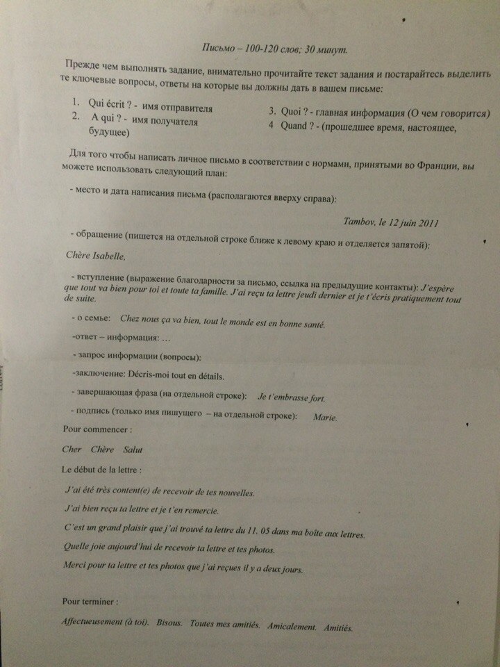 Помогите пожалуйста написать письмо по французскому, срочно нужно.