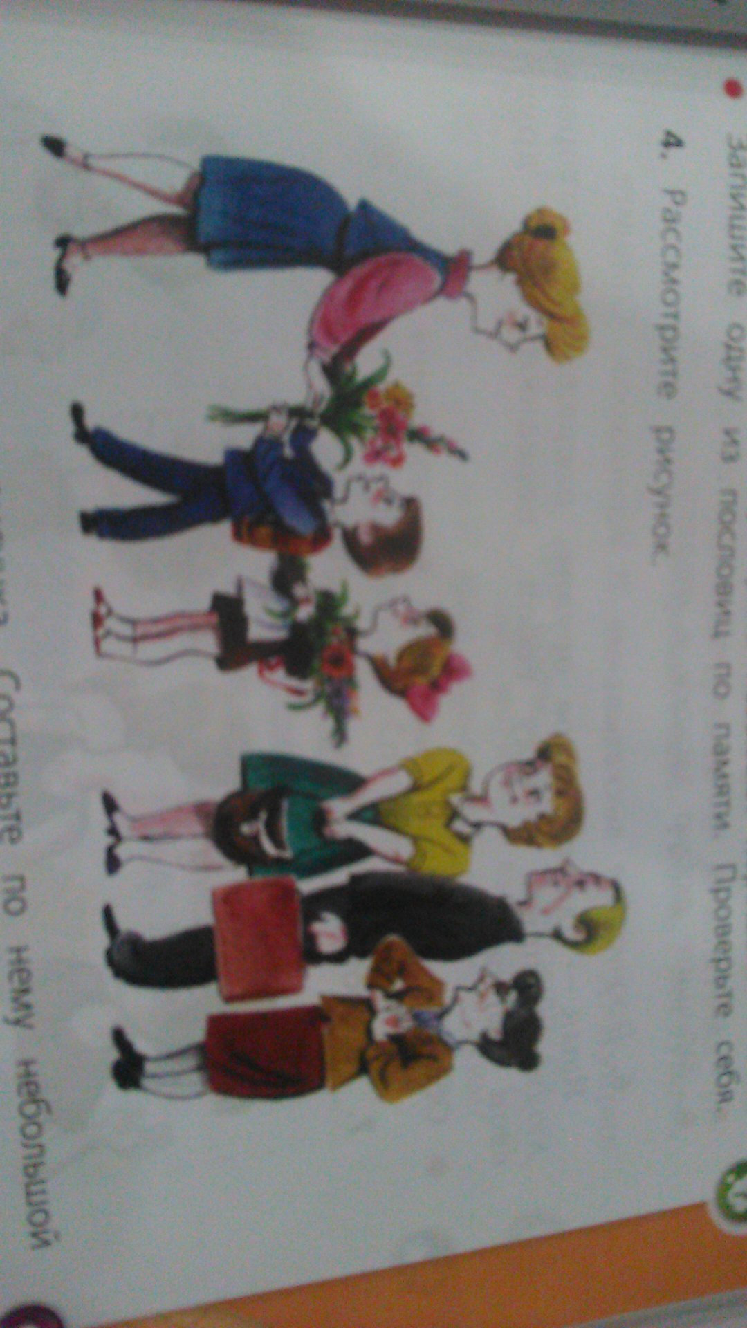 " Мы идём в 1 класс "Сегодня утром мы пошли в школу,ведь кончалось наше детство пора и учится.я был одет в красивый пиджак и держал в руке красивый букет.Когда мы подошли к школе,я услышал песню про учёбу.И мне она понравилась!Когда мы вошли в класс я увидел учителя и я подарил ей букет.Она сказала-Спасибо.С этого и началась моя дорога в школьную жизнь!