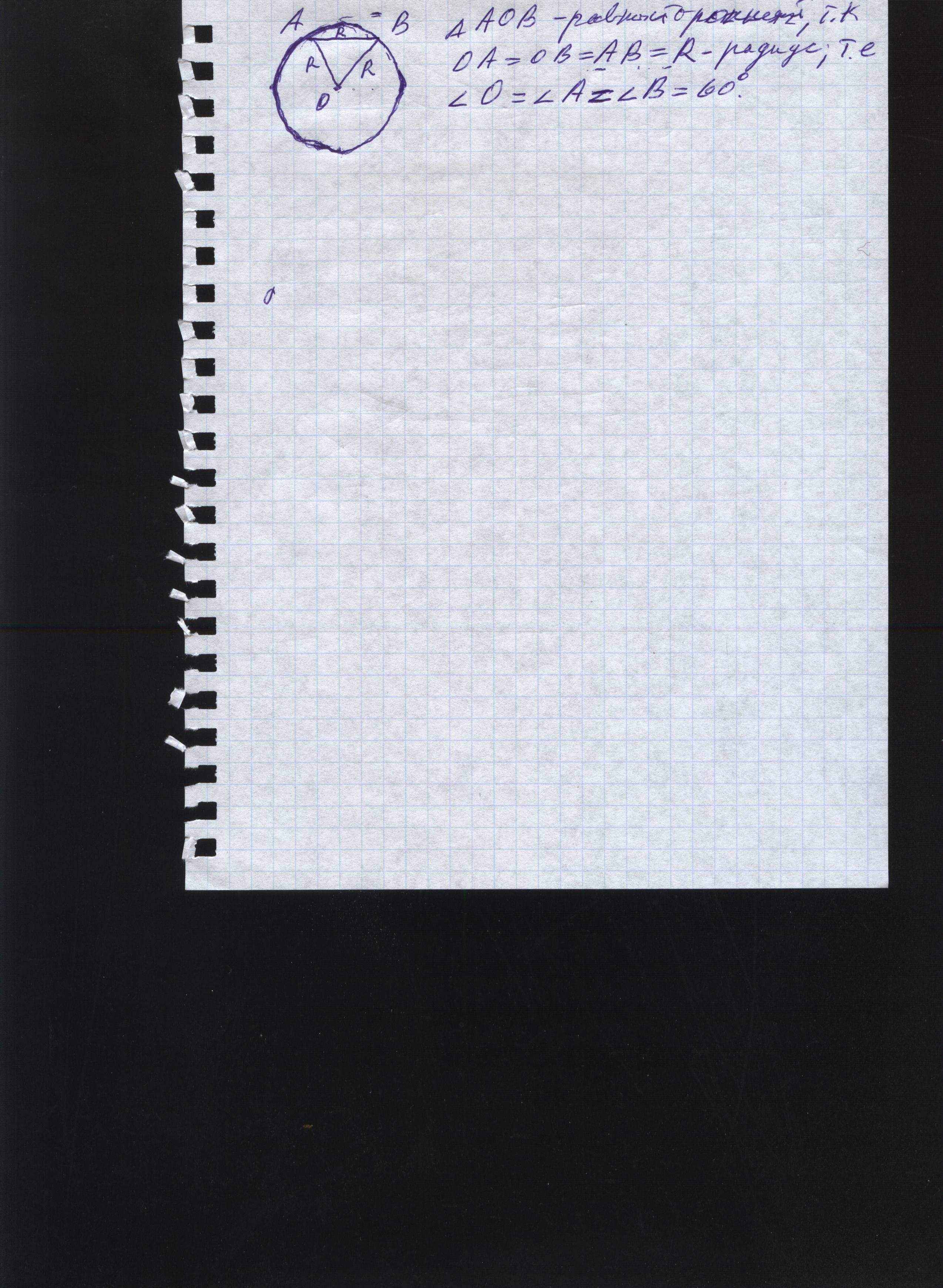 В окружности в центром О проведена хорда АВ, равная радиусу окружности . НАЙТИ углы треугольника АОВ