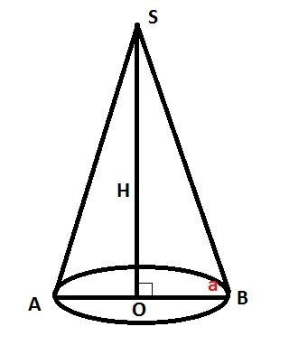 1) Пусть ABS - данный конус. SO⊥AB, SO - высота конуса, SO=H.
