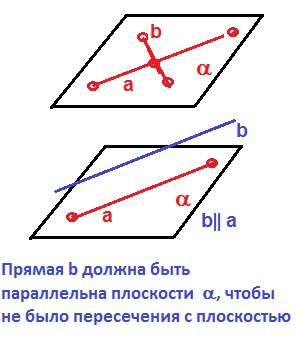 Чтобы не пересекаться хотя бы в одной точке прямая b должна быть параллельной плоскости.