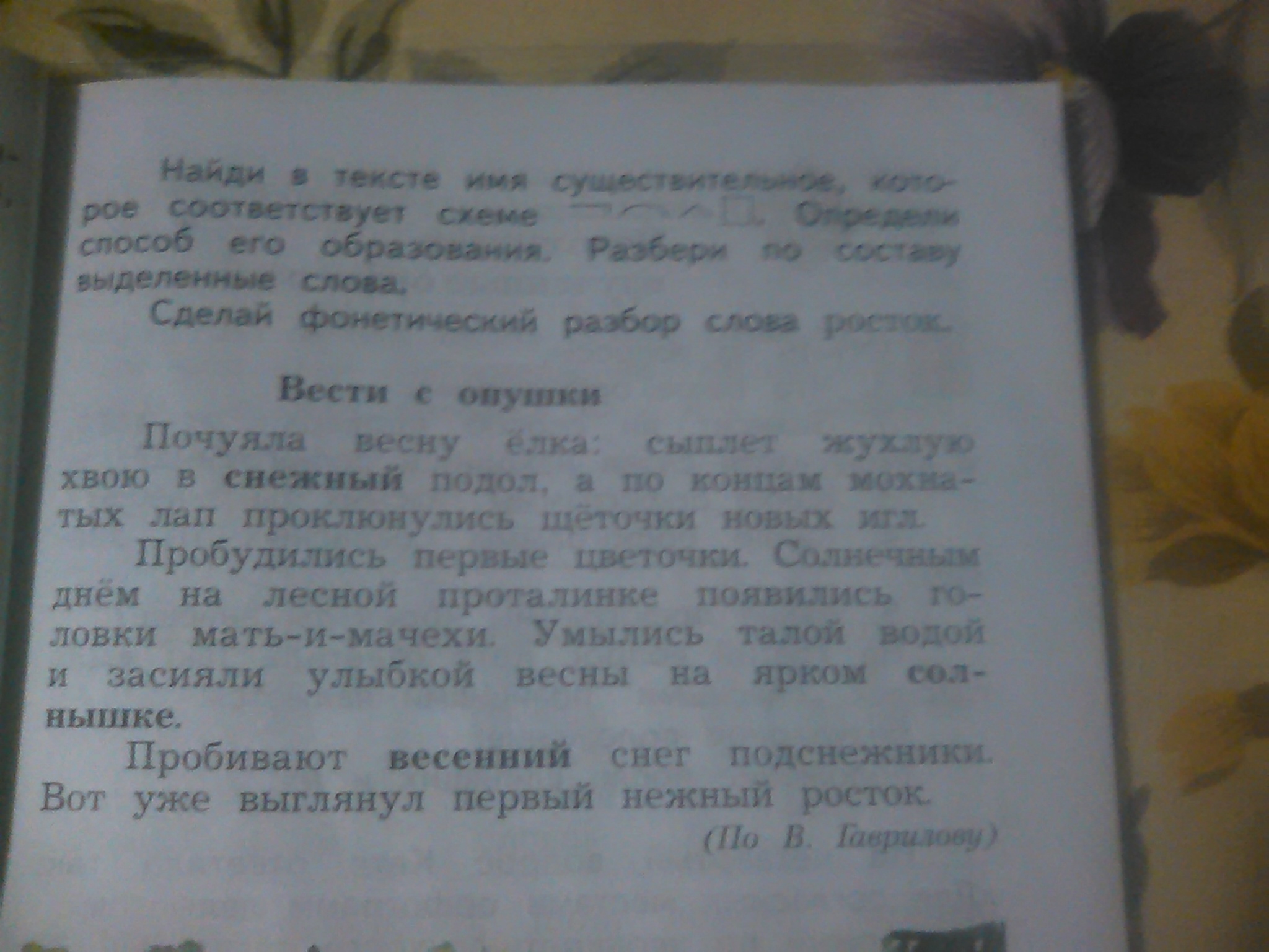 Прочитай текст. Найди и выпиши однокоренные слова. У имён прилагательных обозначь основу и окончание
