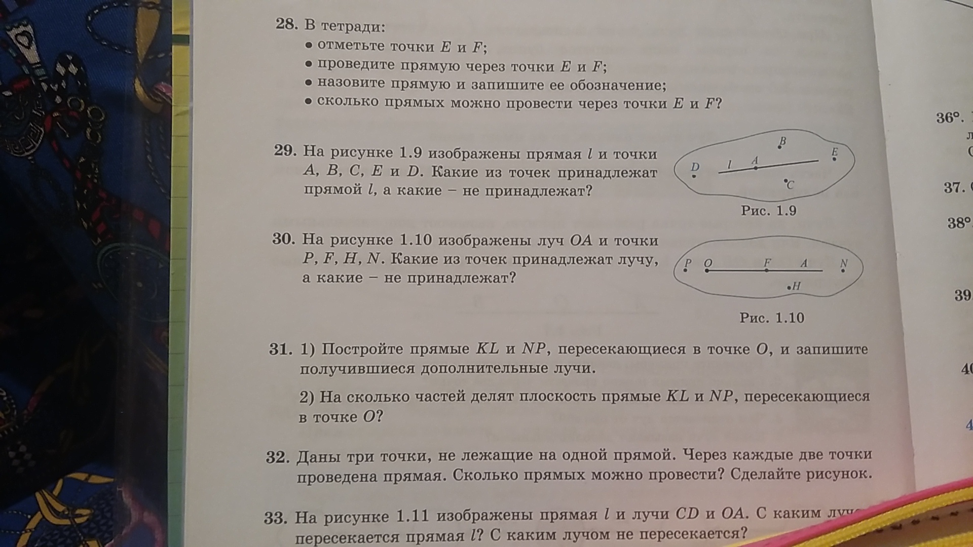 Принадлежат - F, N(так как луч можно продолжить)
