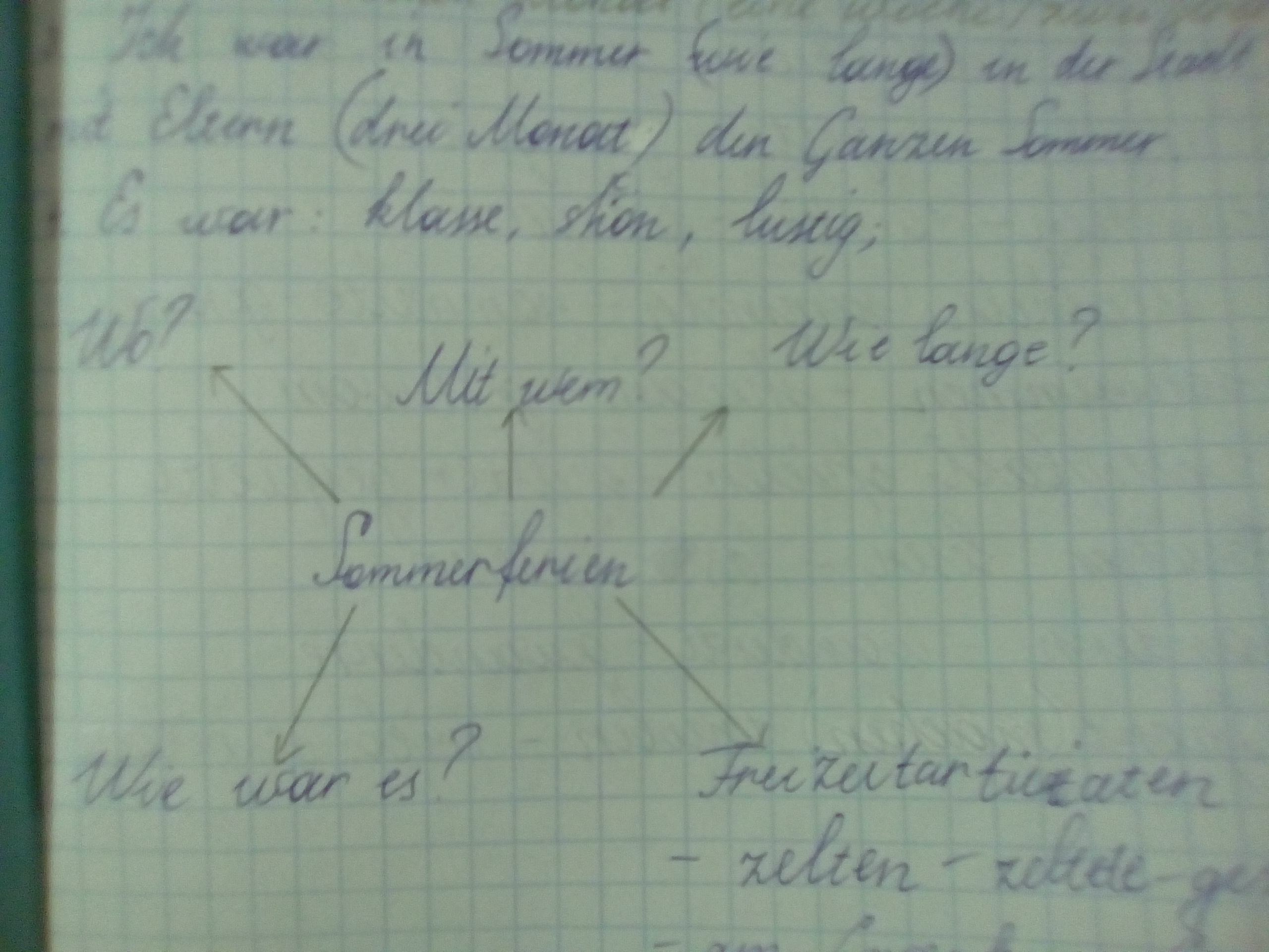 Wie war es? как это было? - Es war ganz toll: Ich habe gezeltet und viel geangelt. (Это было просто здорово: я жила в палатке и много рыбачила). Wir haben jeden Abend gegrillt: es gab Würstchen, Brot, Kartoffel, Tomaten und Gurken und vieles anderes. (мы каждый день жарили шашлыки: на столе были сосиски, хлеб, картофель, помидоры и огурцы и многое другое). Das klingt alles sehr einfach, aber wir waren den ganzen Tag baden und waren sehr hungrig.(Кажется, что пища была простой, но мы купались весь день и были очень голодными). Wir haben immer alles aufgegessen und es hat uns sehr gut geschmeckt! (Мы всегда все съедали и нам было очень вкусно!). Am Wochenende haben wir Volleyball gespielt. (На выходных мы играли в волейбол). Als ich nach Hause kam, haben mich meine Eltern nicht erkannt - ich war so braun gebräunt und rund. (Когда я вернулась домой, меня родители не узнали - я была такой загорелой и поправившейся (в смысле, потолстевшей).