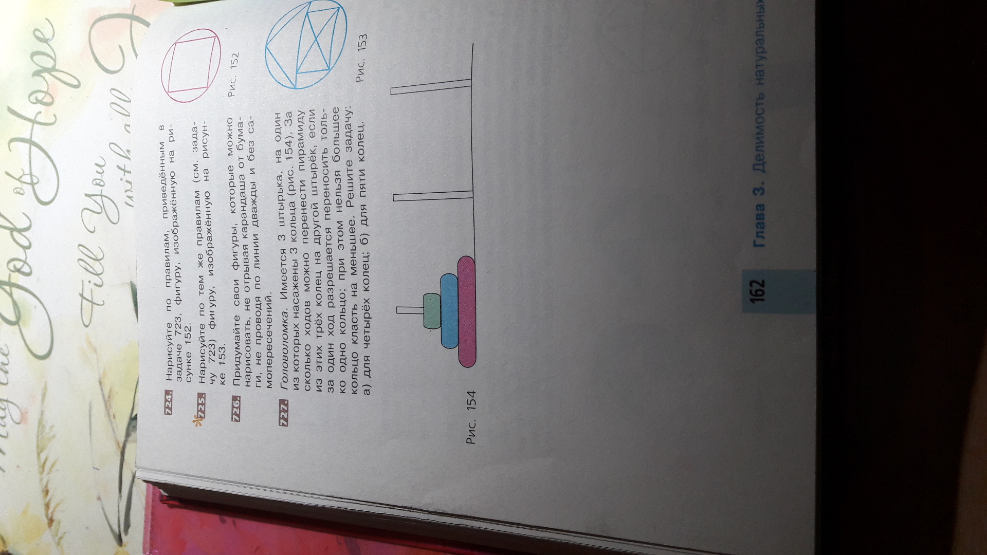Сначала зеленое кольцо переместить на 3 штырь слева, а голубое на 2 штырь.. Потом зеленое кольцо на на голубое. Красное кольцо на 3 штырь, зеленое кольцо на 1 штырь, голубое на 3 штырь, зеленое на 3 штырь. В итоге пирамида оказалась на 3 штыре. Всего 7 ходов.