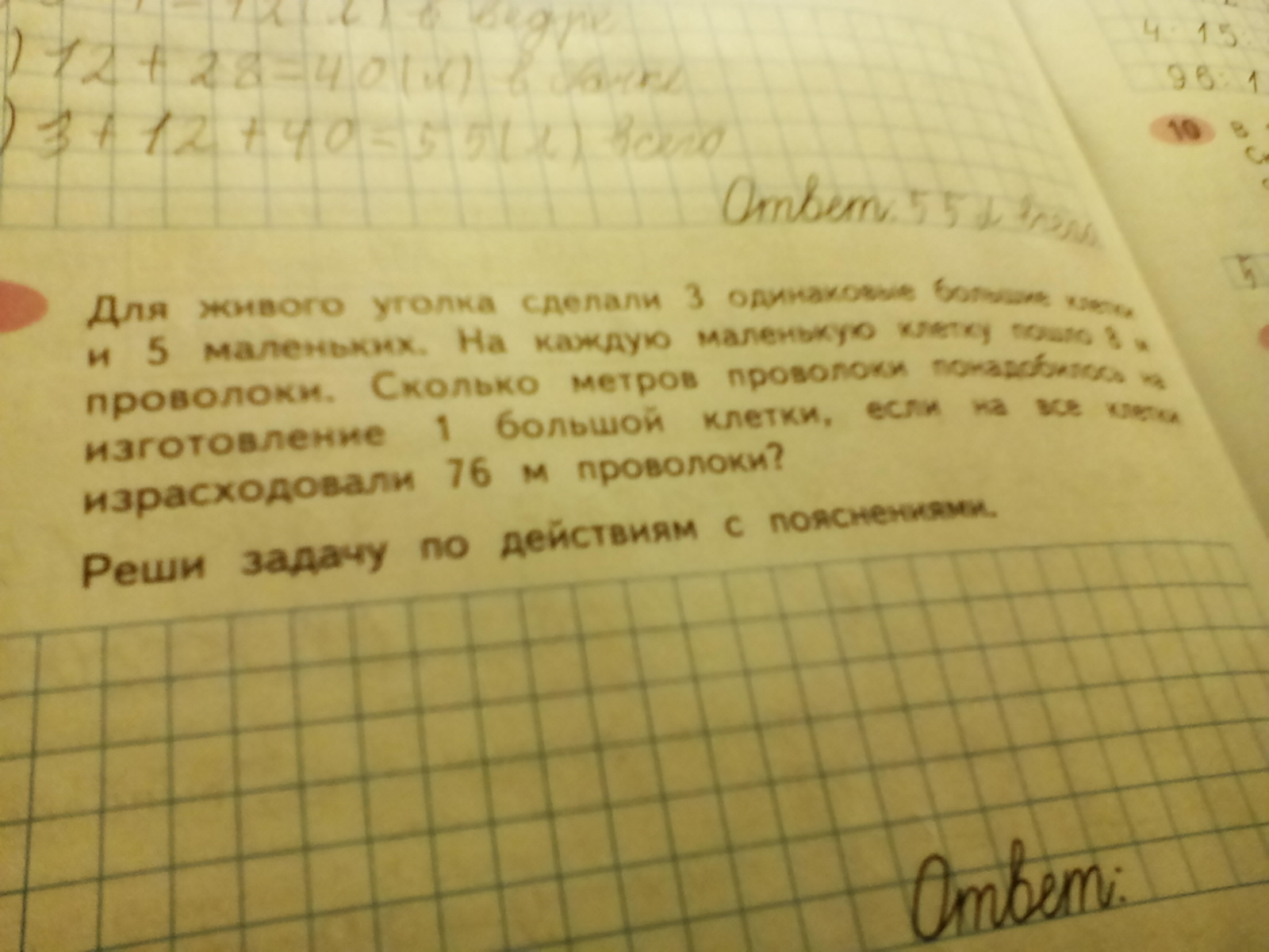 3) 36÷3=12 метров проволки на 1 большую клетку