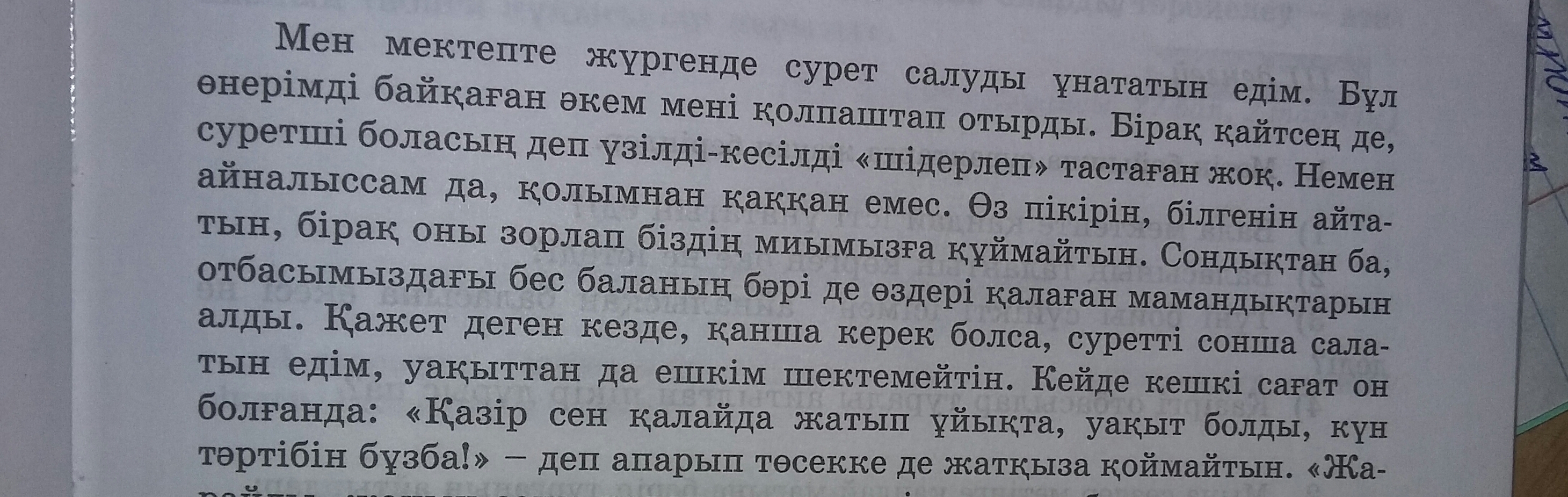 Когда я в школу ходил я любил рисовать рисунки.Тогда папа узнал мой способность красиво рисовать он меня поддерживал.